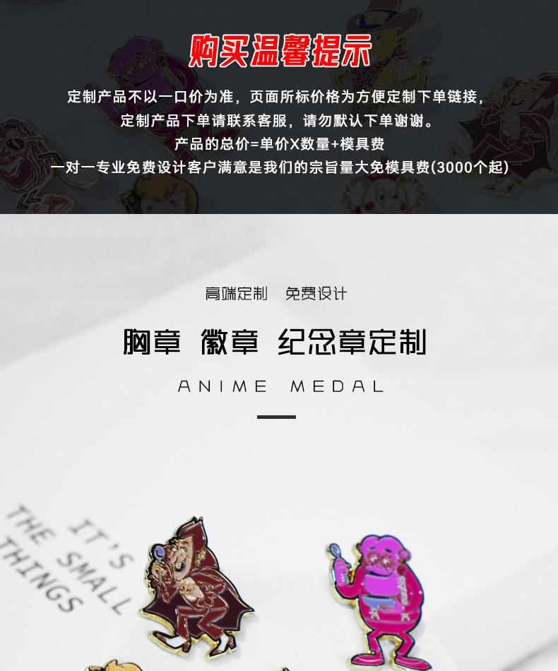 Medalla Metálica Personalizada Personaje de Dibujos Animados Aleación Circo Insignia Creativa de Dibujos Animados Accesorios Creativos Medalla Venta al por Mayor