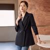 Chaqueta de traje elegante de doble hilera para mujer, nueva moda de primavera transfronteriza, traje pequeño de manga larga para mujer, informal, holgado, combinable con todo.
