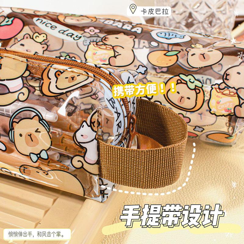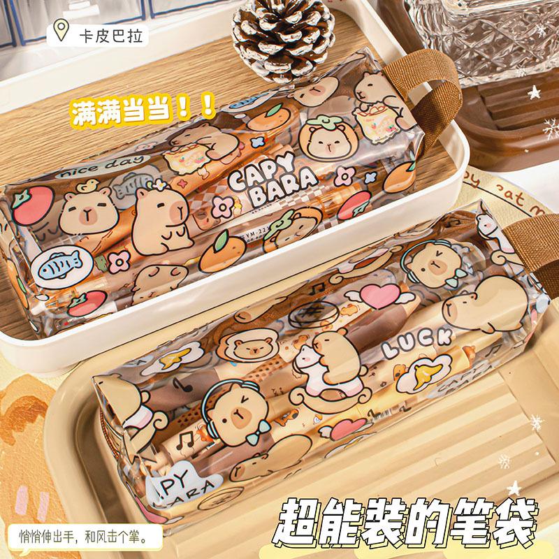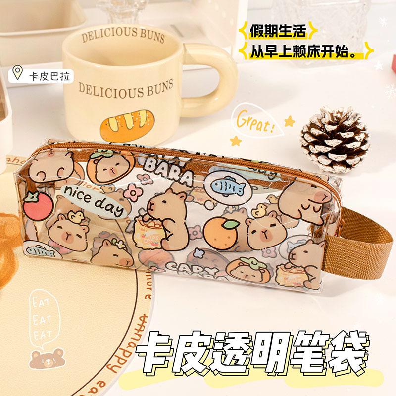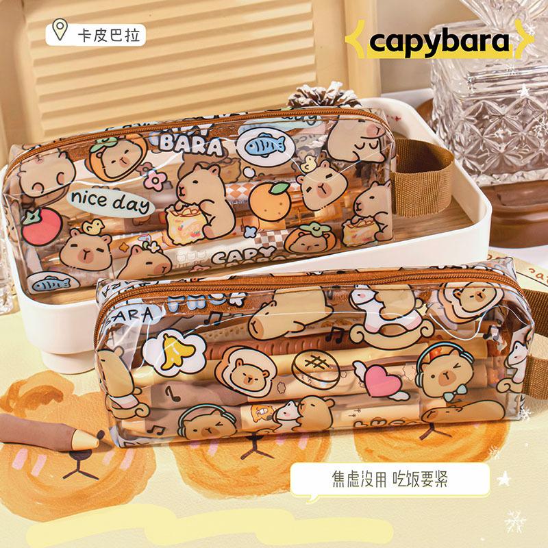 Kapib paradise transparent pencil case, Food stuff card leather transparent pencil case