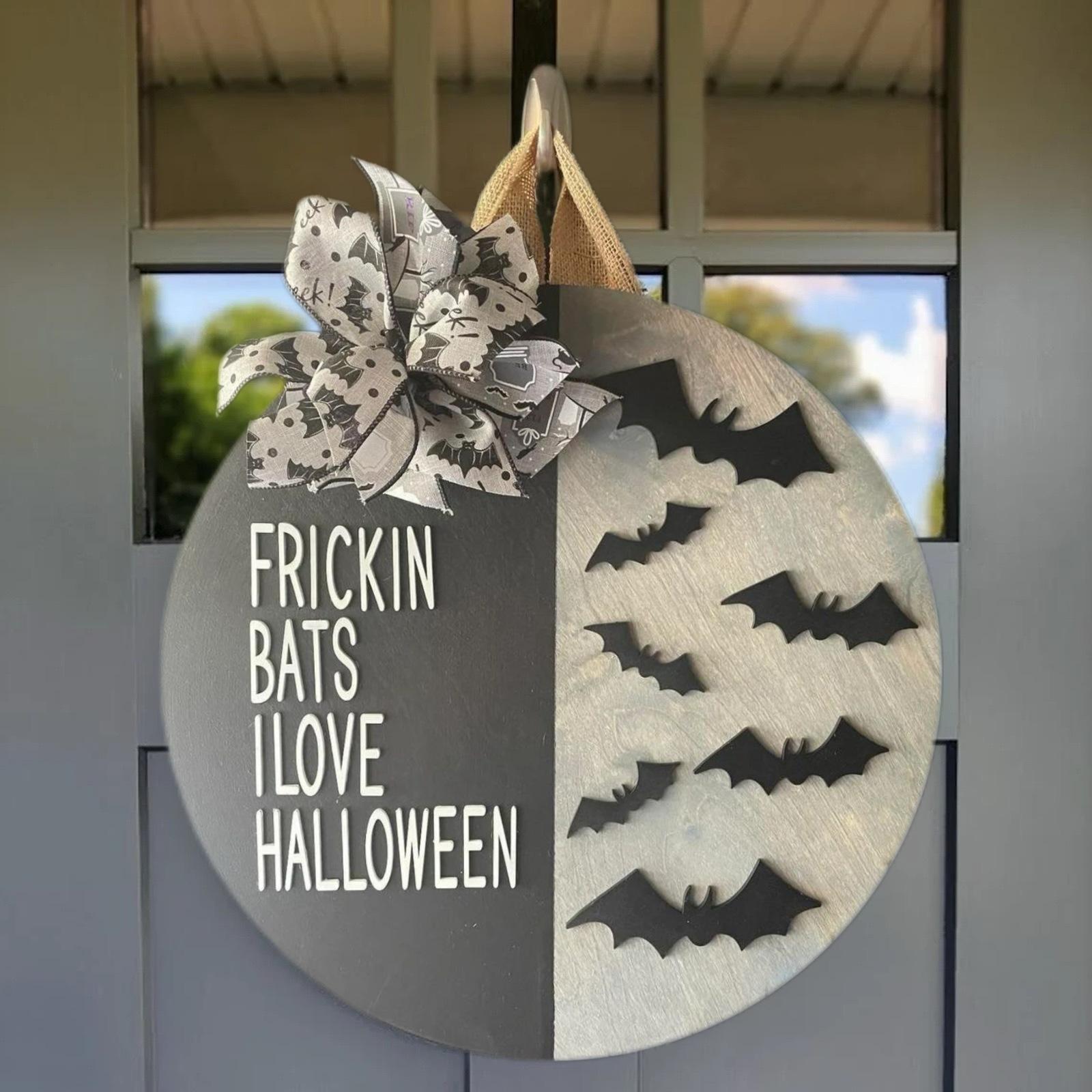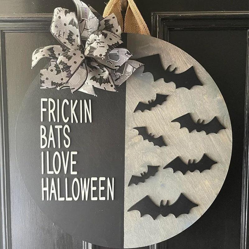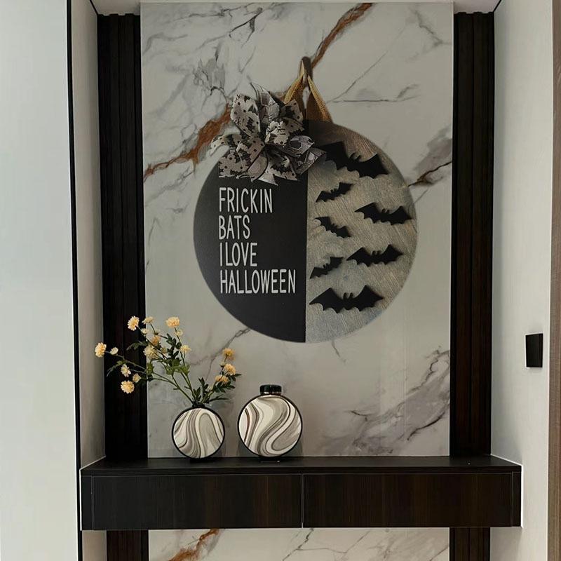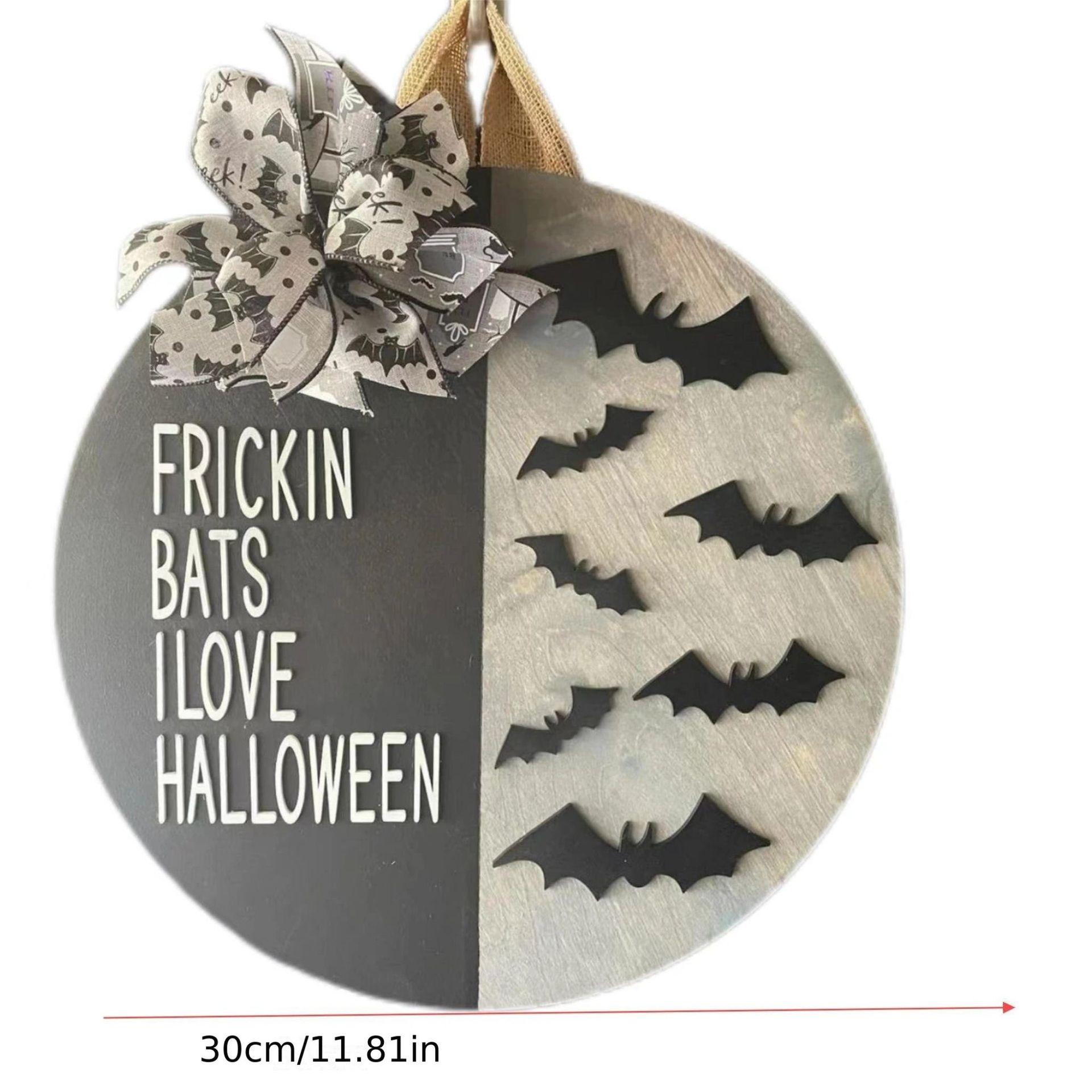 Nuevo colgante transfronterizo de decoración familiar de Halloween, decoración de puerta de fiesta de Halloween, placa de puerta de madera maciza de murciélago