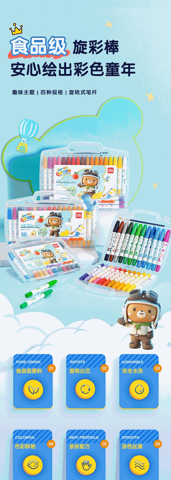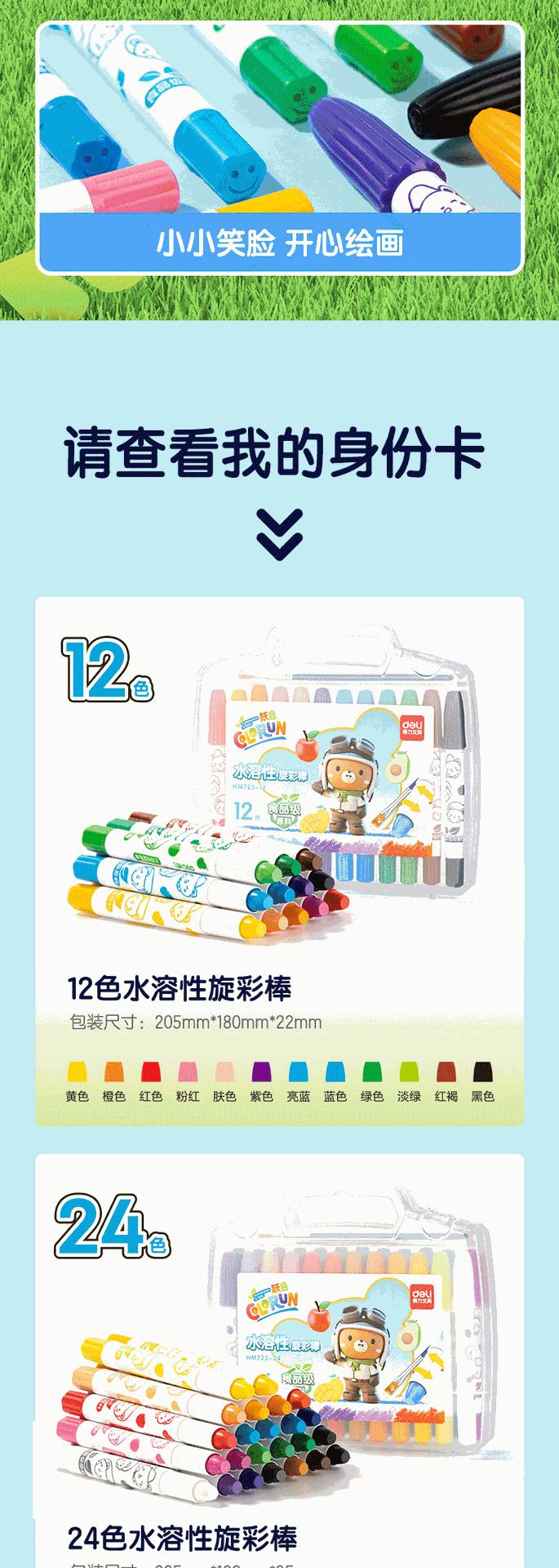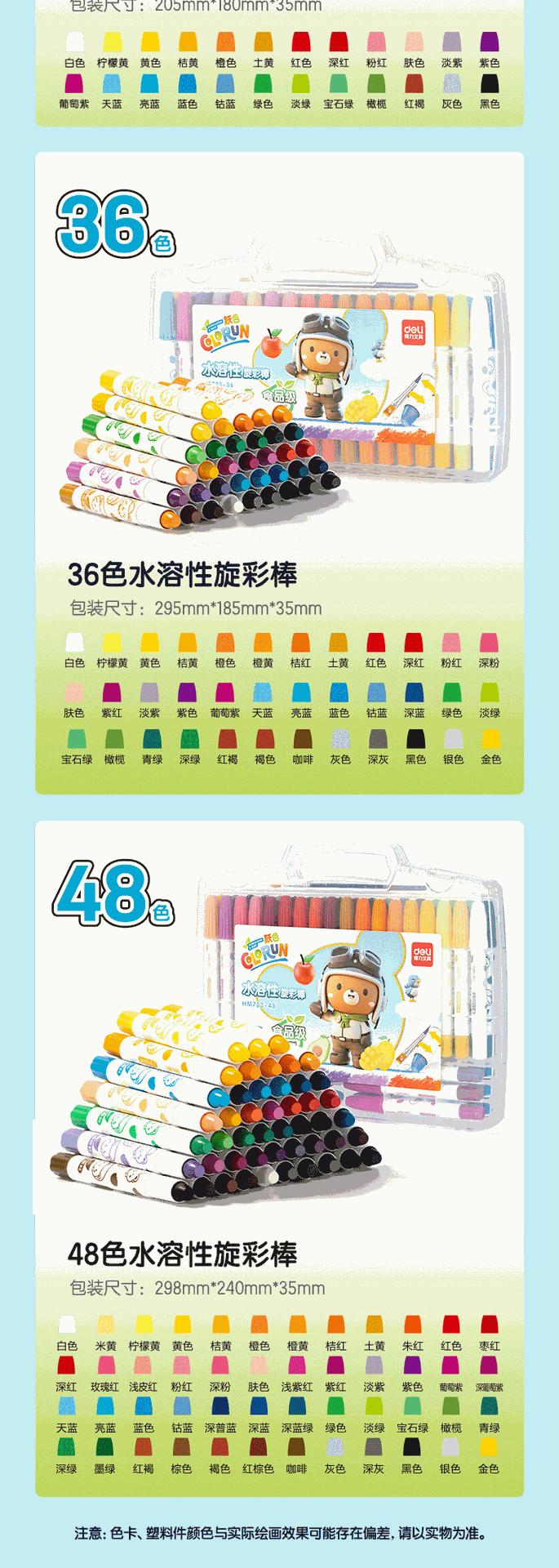Deli HM723 - Lápiz de colores redondo soluble en agua de grado alimenticio para niños, crayón al óleo, pastel, pintura artística, grafiti