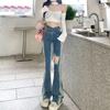 Vaqueros de otoño para mujer, ajustados, sexys y sexys, vaqueros retro con abertura y tiras con borde sin rematar para mujer, verano