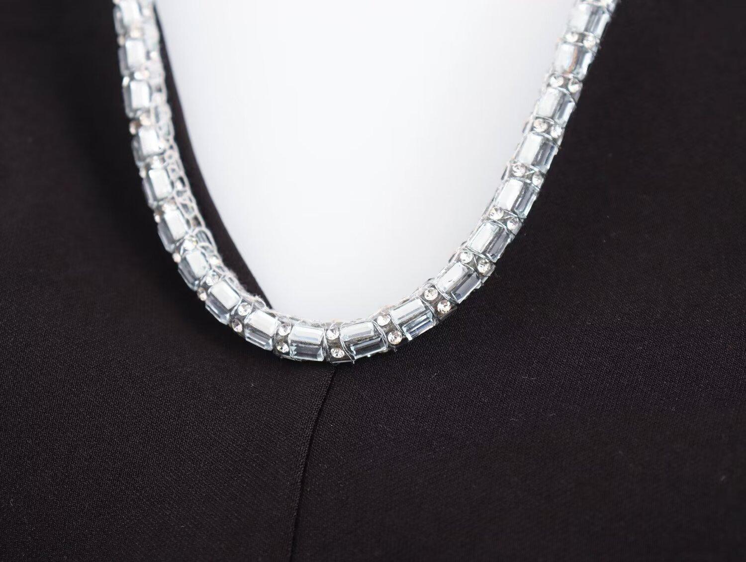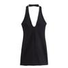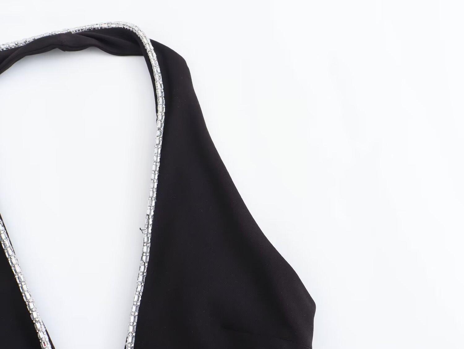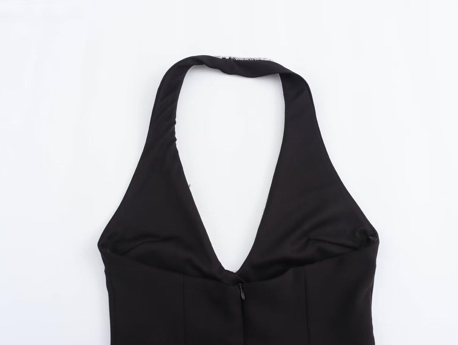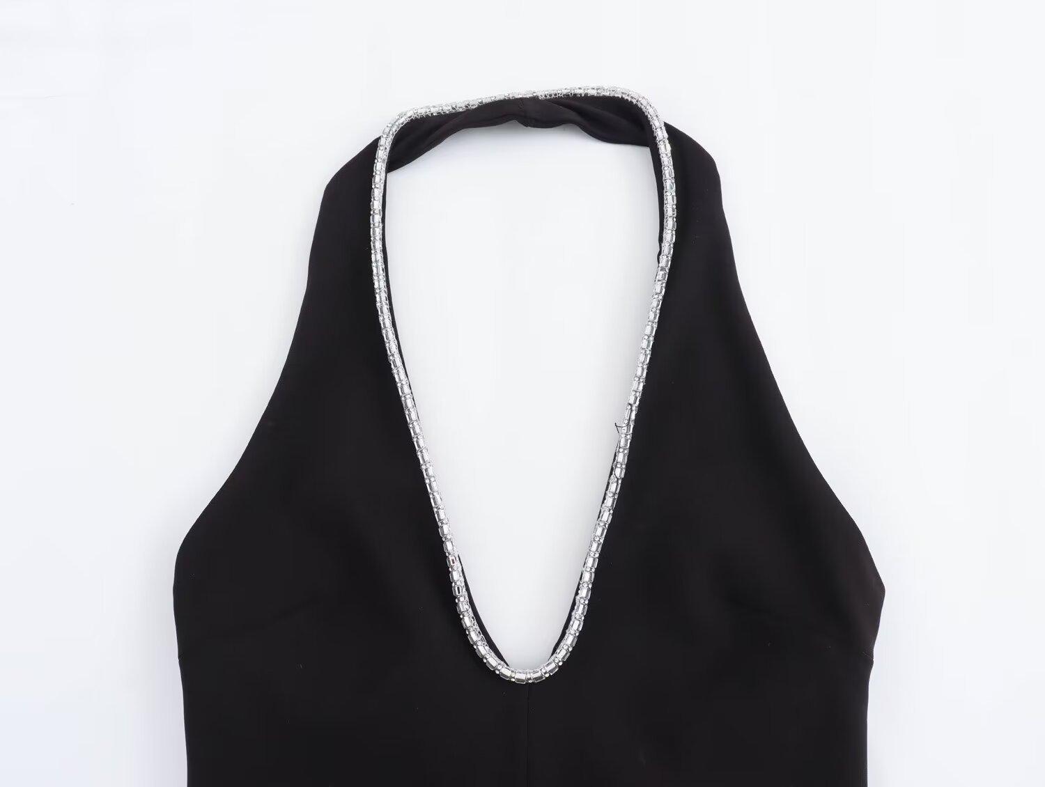 Vestido ajustado sin espalda con cuello colgante y incrustaciones de joyas de temperamento blanco y negro para mujer transfronteriza europea y americana de verano 2024