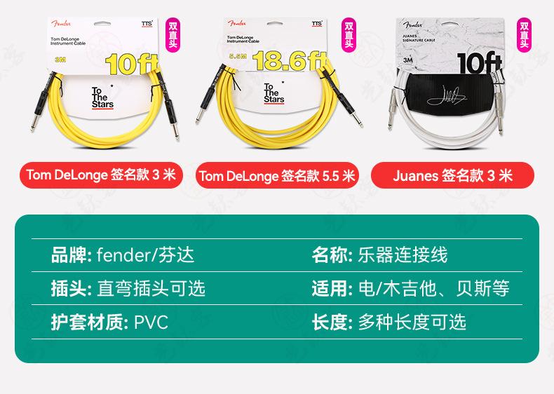 Fender Cable de Guitarra Fender Original Origin Folk Madera Guitarra Eléctrica Cable de Reducción de Ruido Cable de Audio para Bajo
