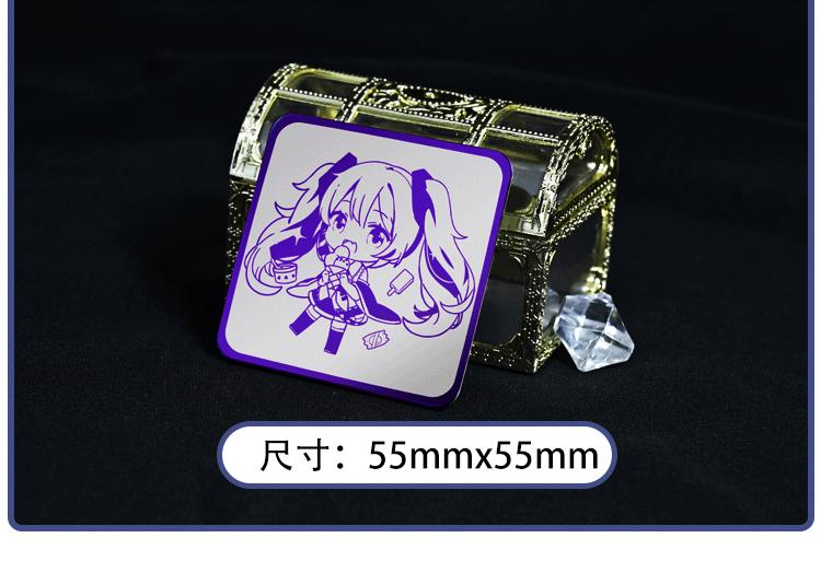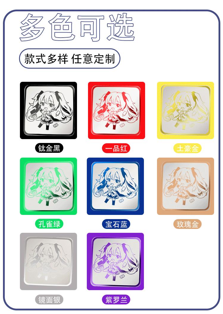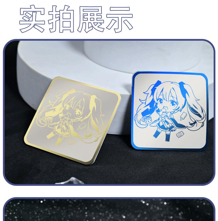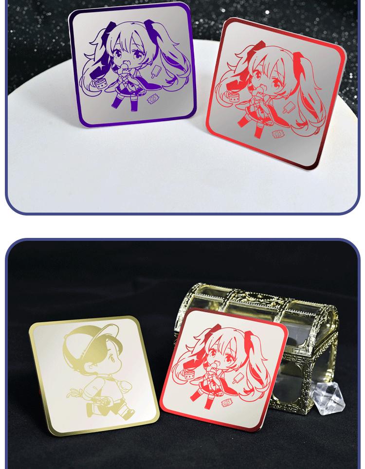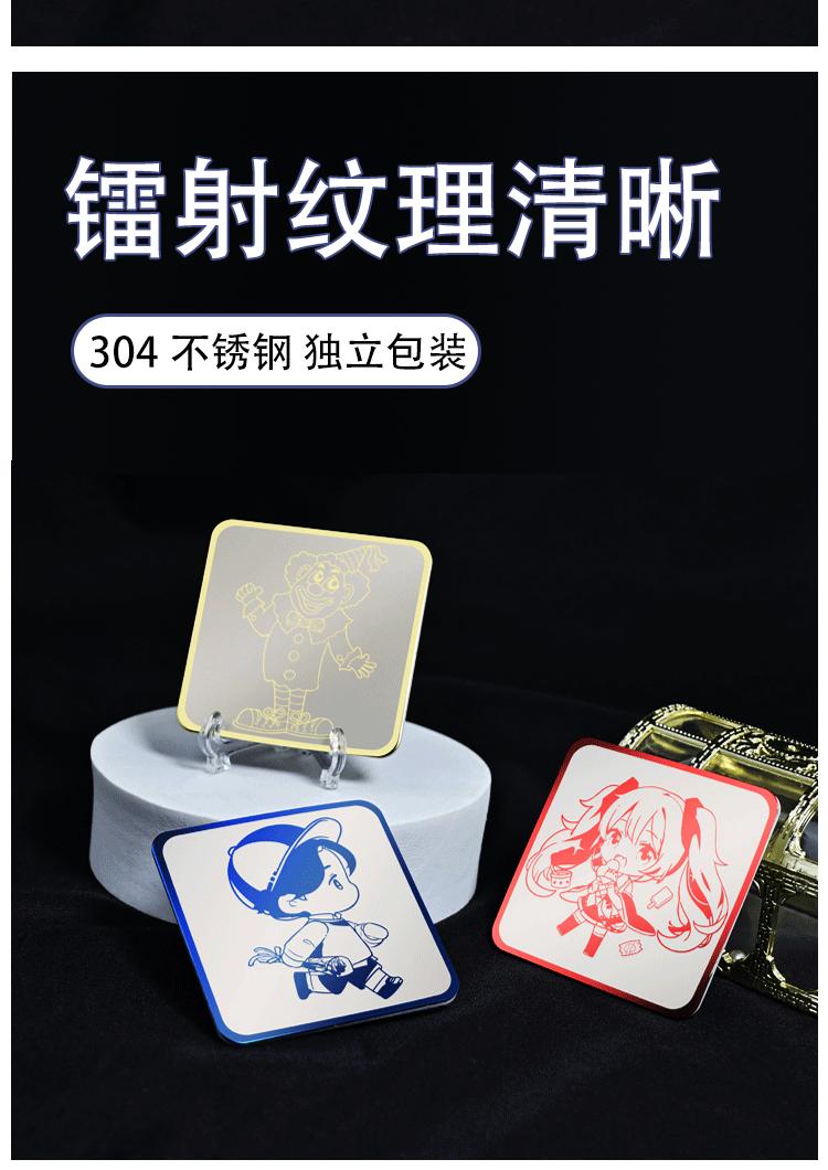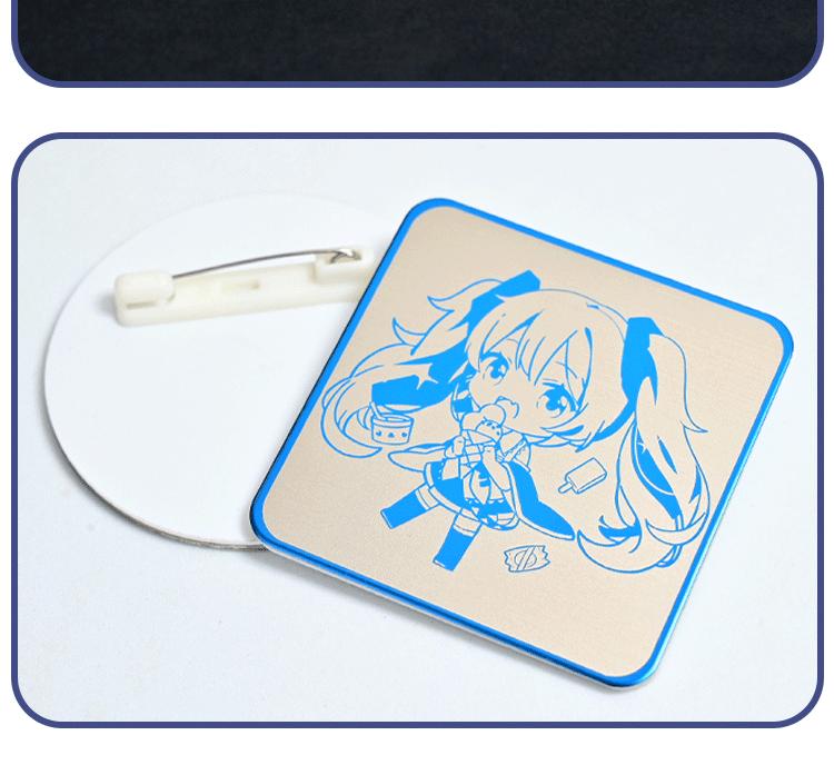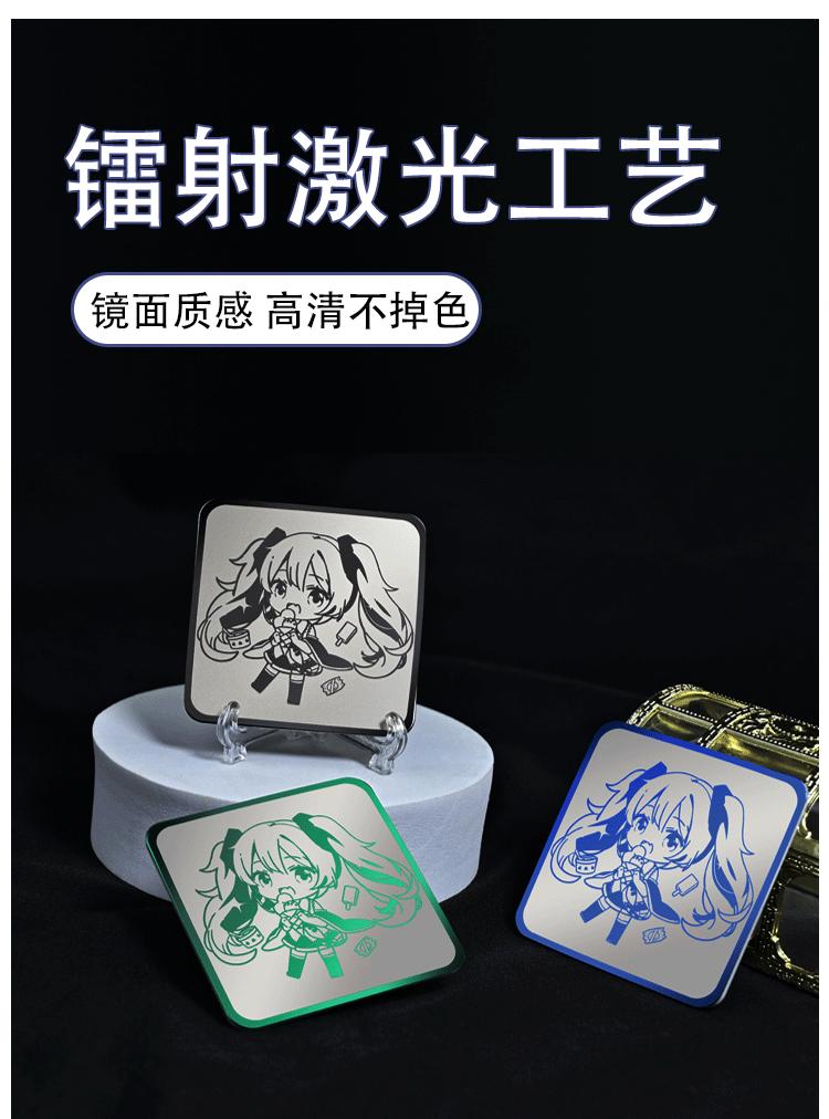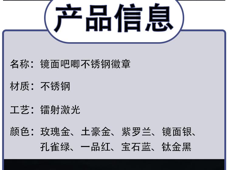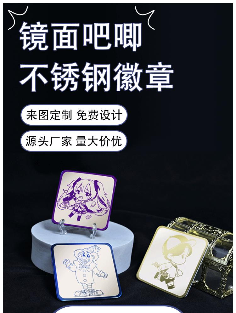 Insignia redonda de acero inoxidable con efecto espejo Millet, insignia metálica cuadrada periférica con animación bidimensional