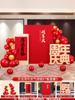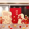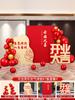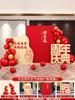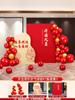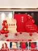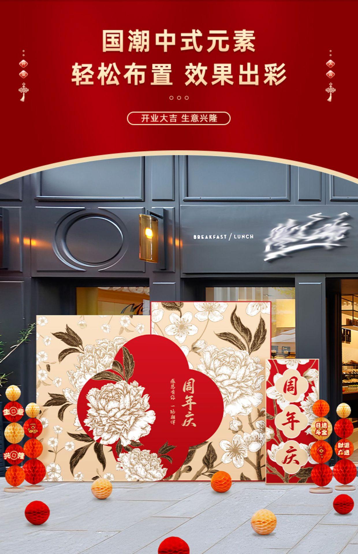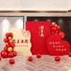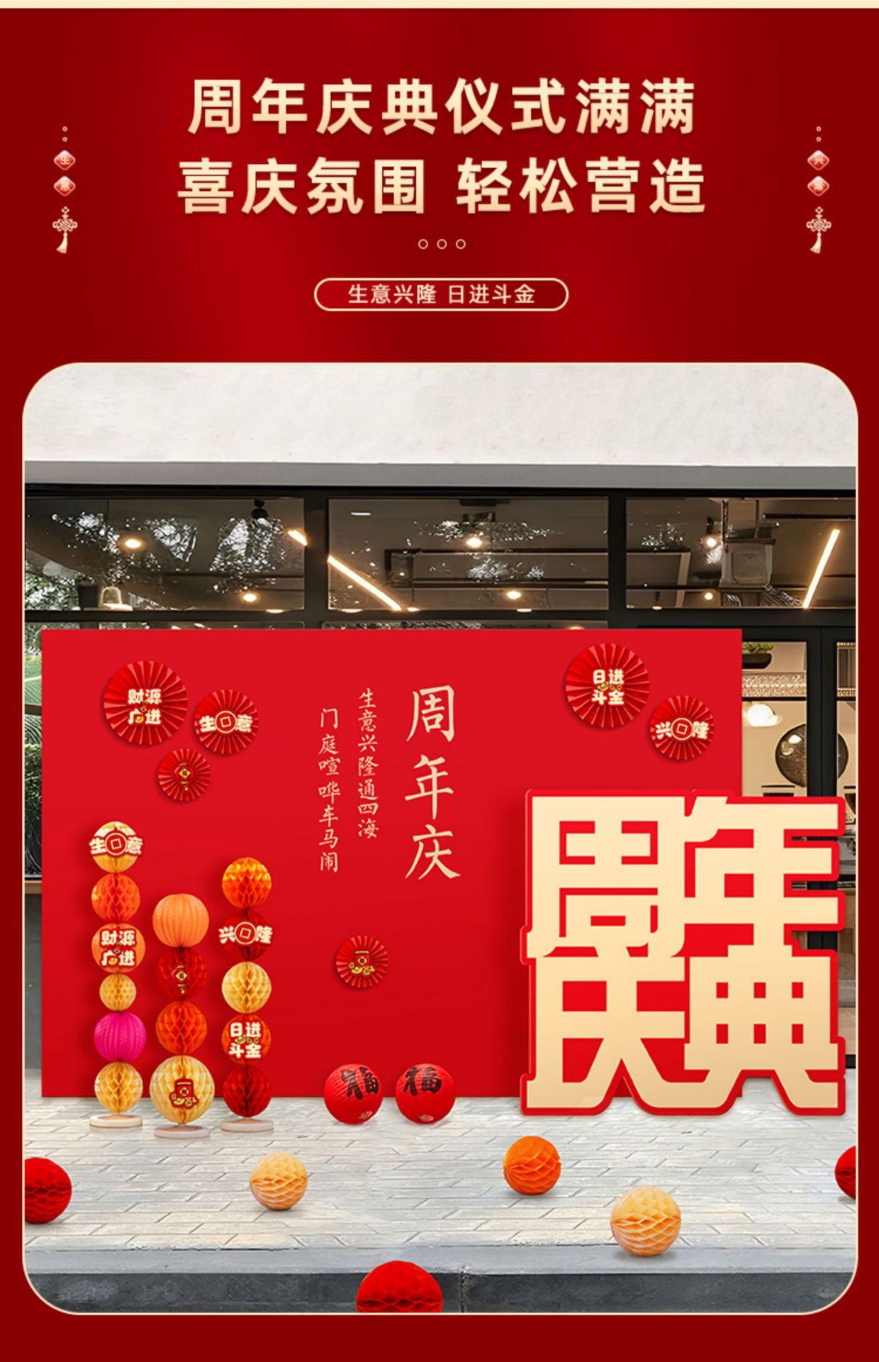 Diseño de escena de actividad de aniversario de inauguración de tienda de empresa, fondo de sobre rojo, pared de firma, tablero KT personalizado, decoración de globos
