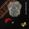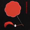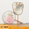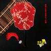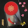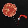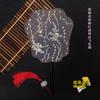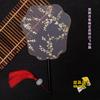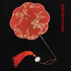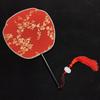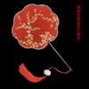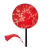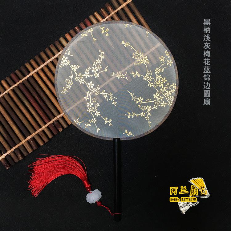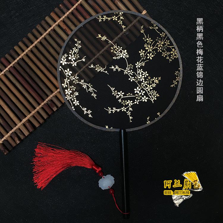 Black handle Red Plum Blossom blue brocade edge flying fairy fan