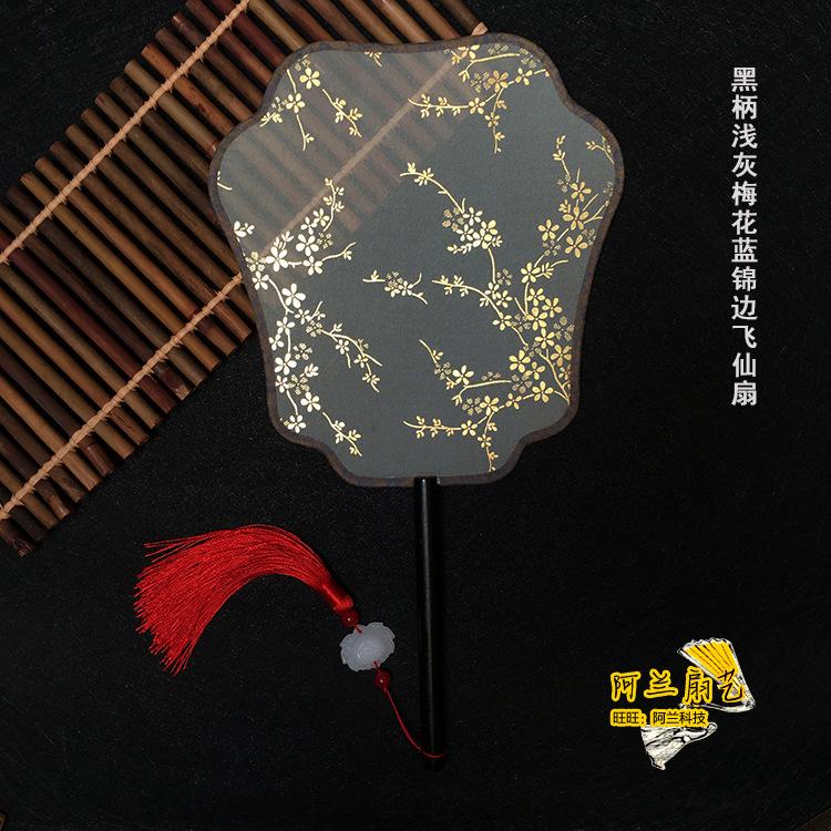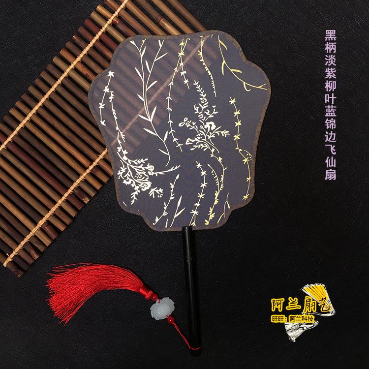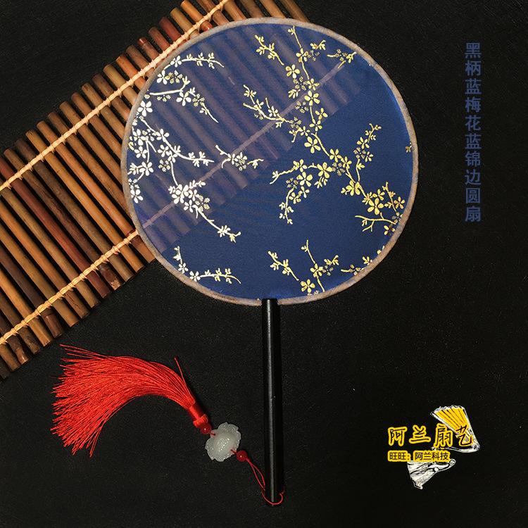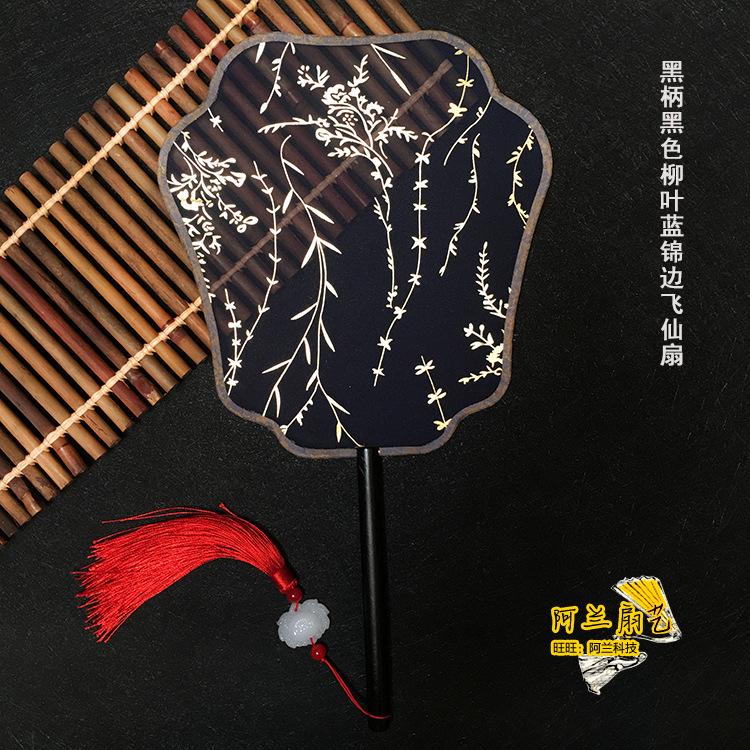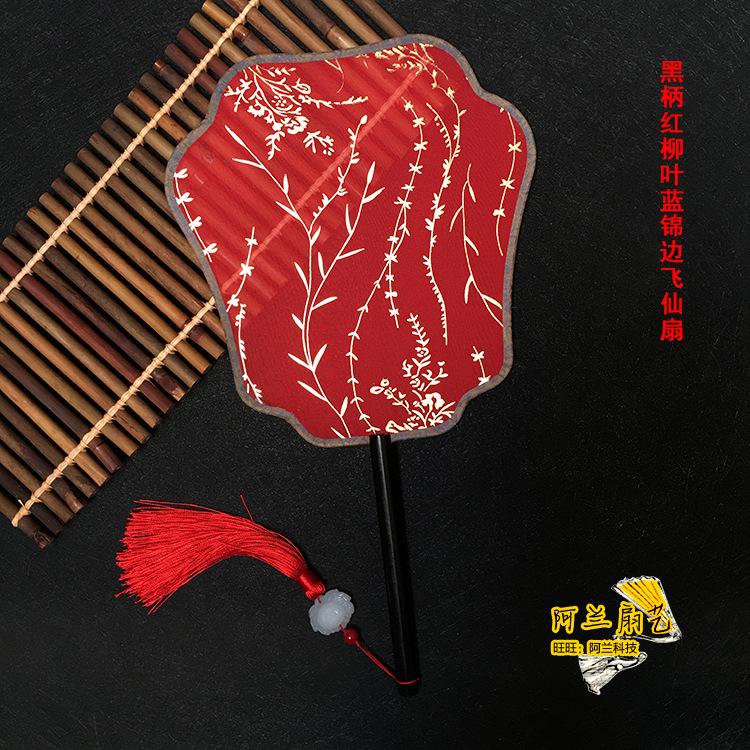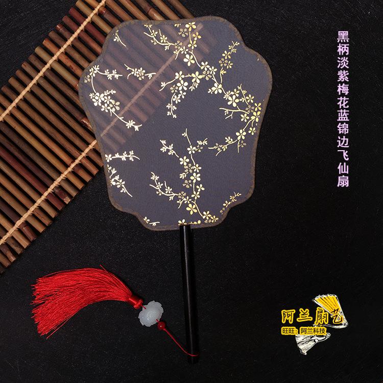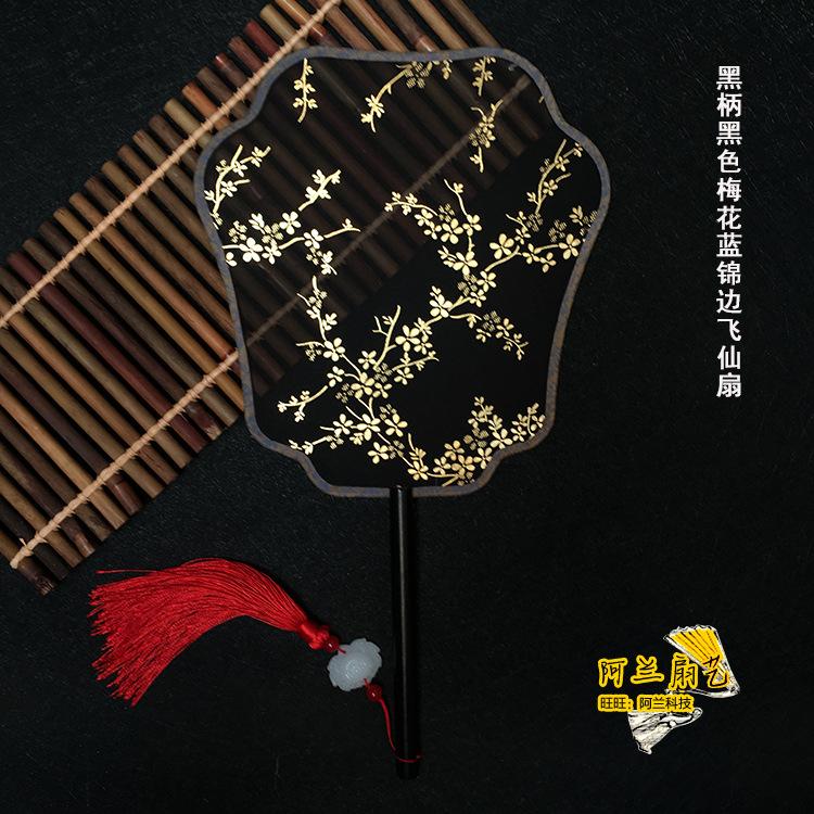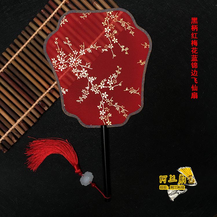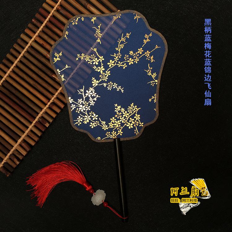 Black handle red willow leaf blue brocade flying fairy fan, Black handle red plum blossom blue brocade flying ...