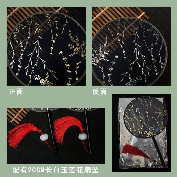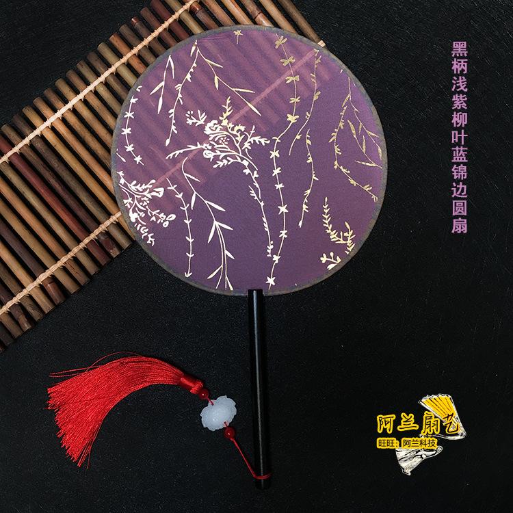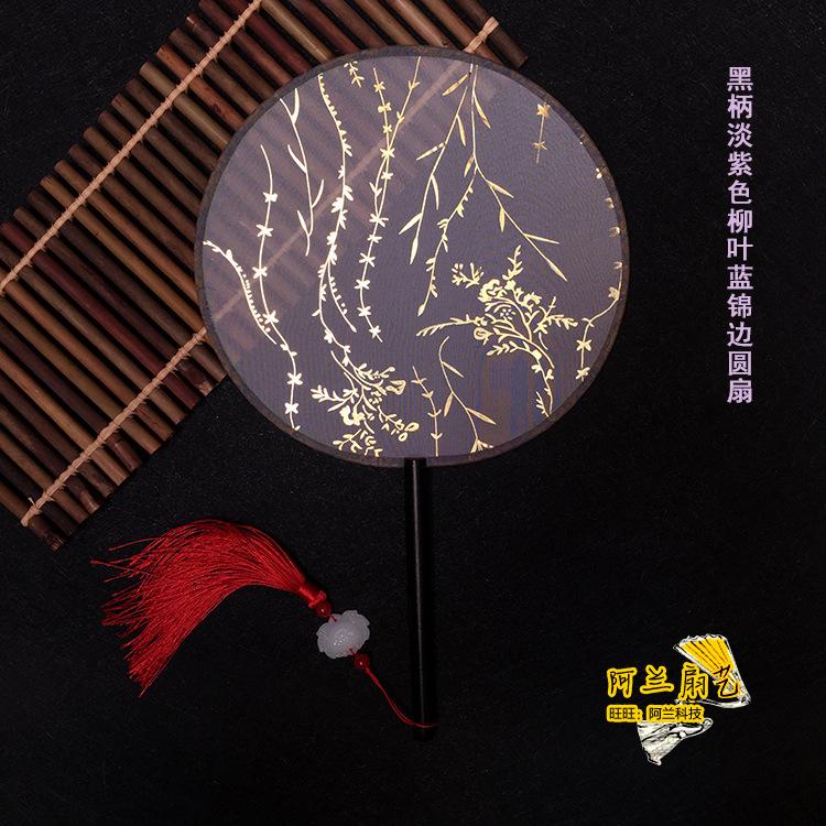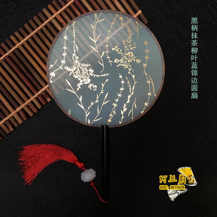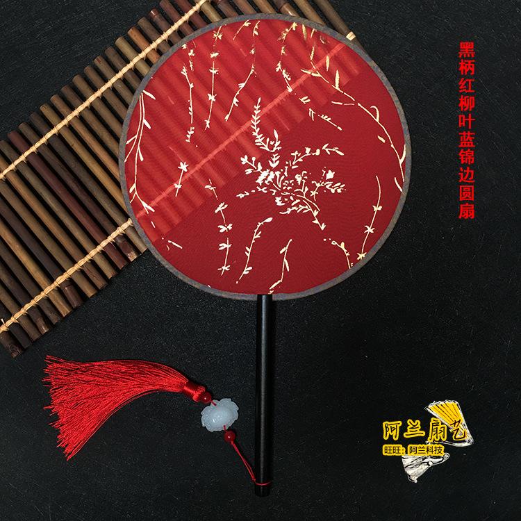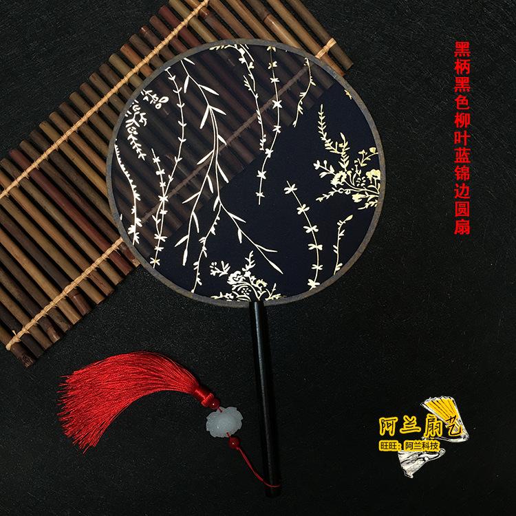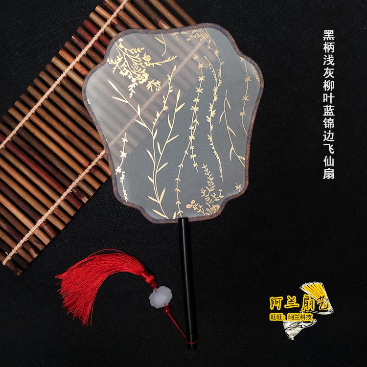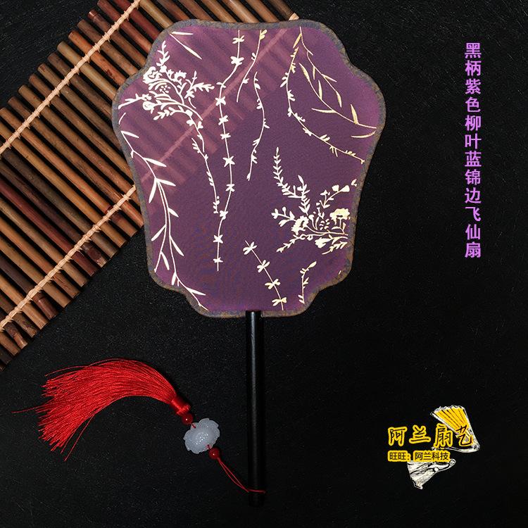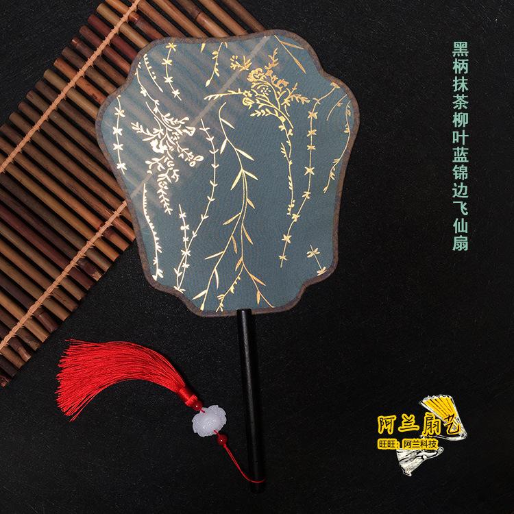 Black handle red willow leaf blue brocade flying fairy fan, Black handle red plum blossom blue brocade flying ...