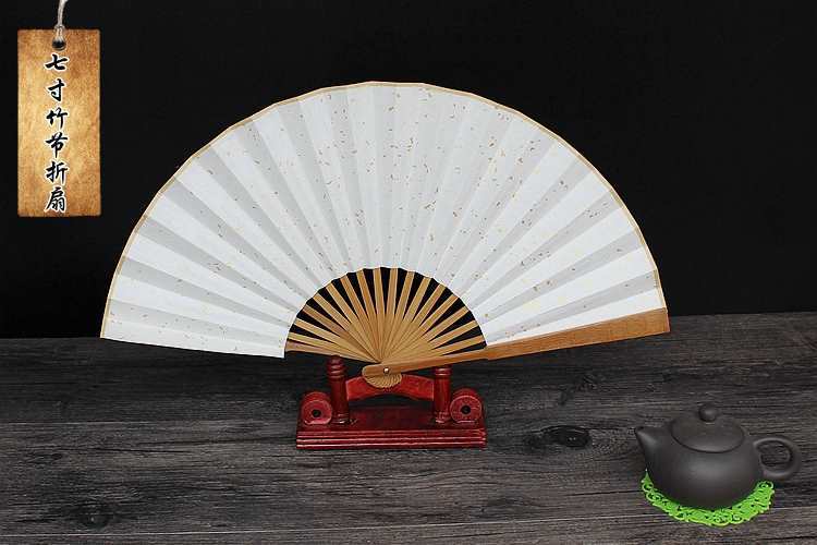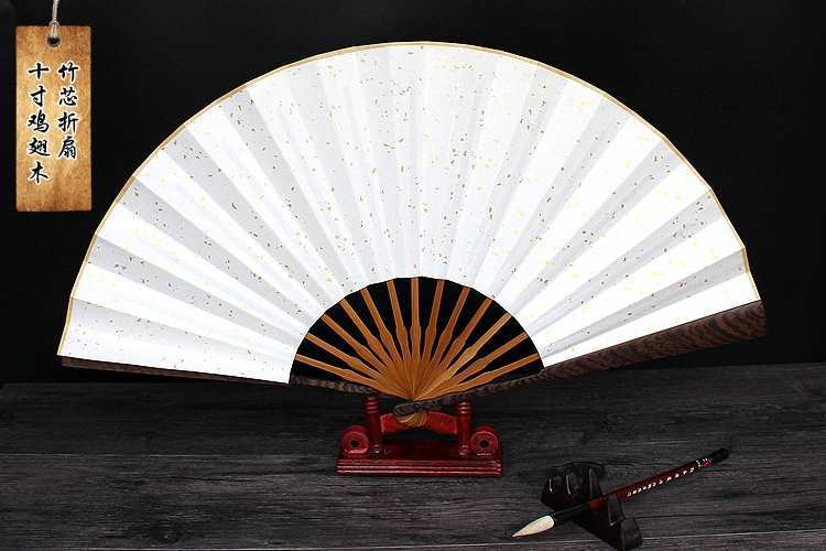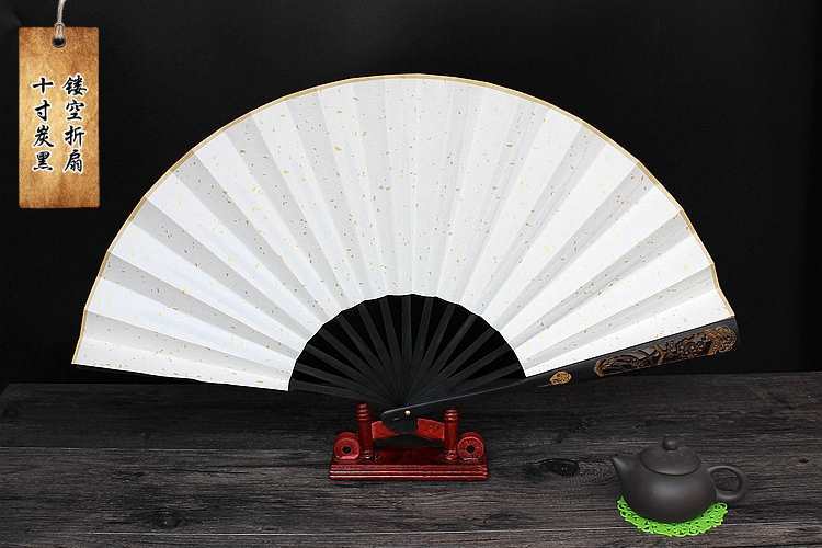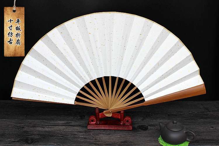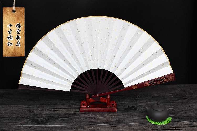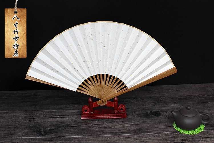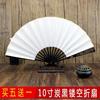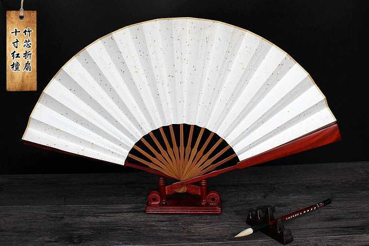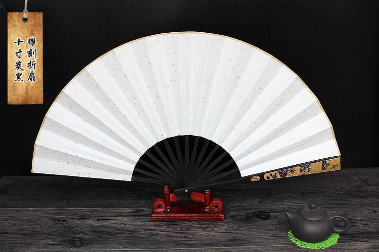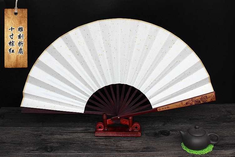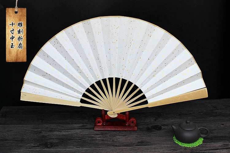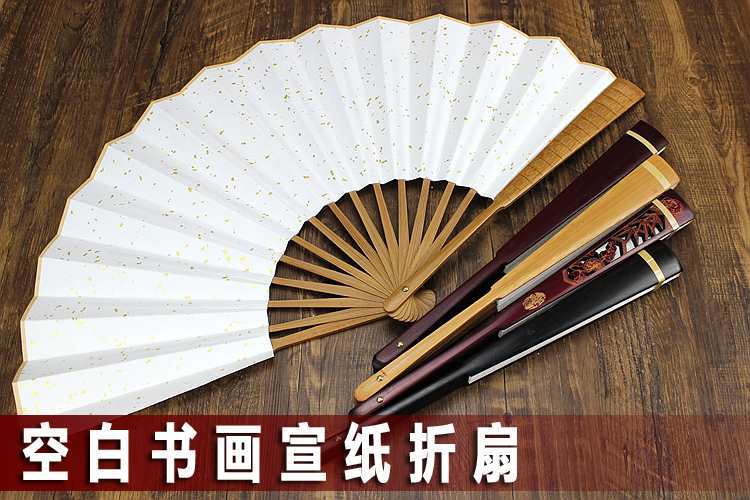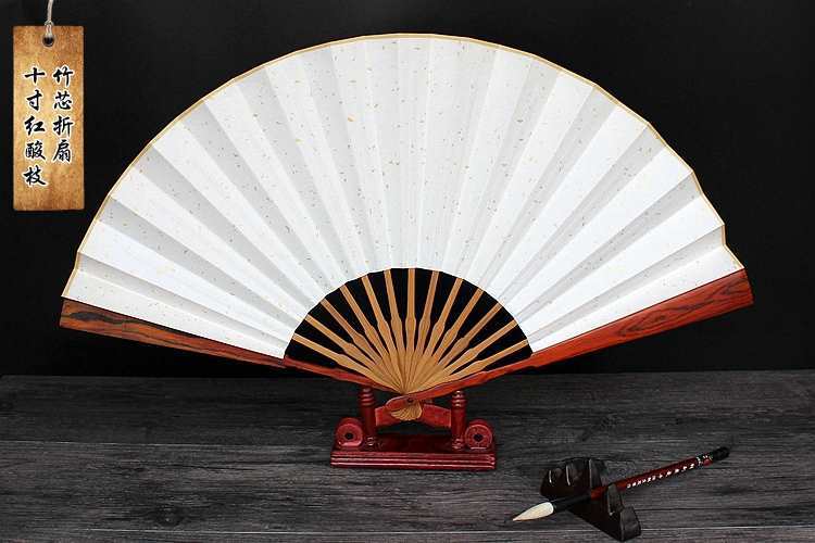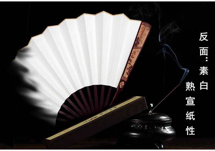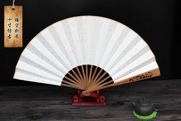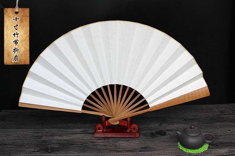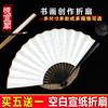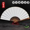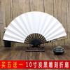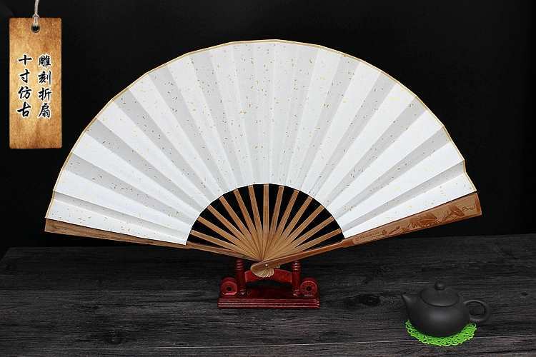 Abanico plegable de papel Xuan de 10 pulgadas y 15 pulgadas con placa cuadrada tallada, sección hueca de bambú, abanico plegable con pintura de hueso y caligrafía, papel Xuan en blanco