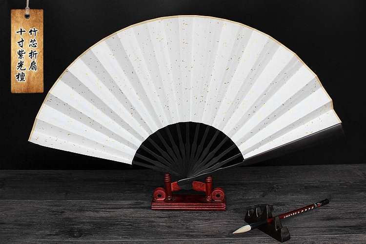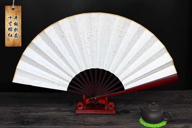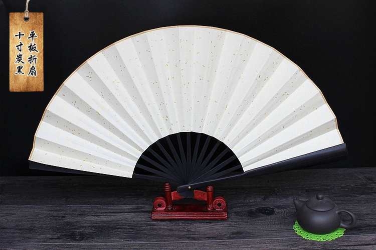 10-inch brown red flat folding fan, 10-inch carbon black flat folding fan, 10-inch medium Jade flat folding fa...