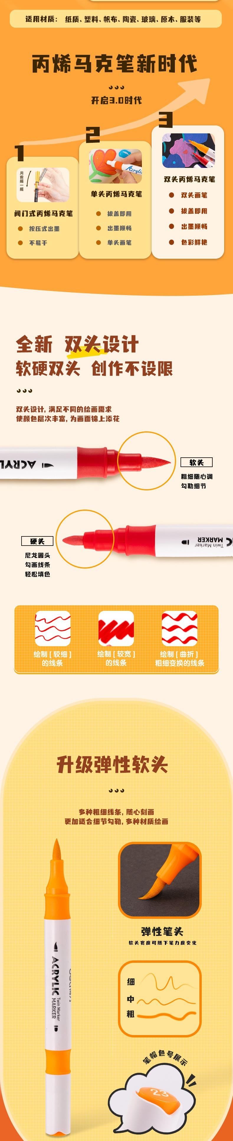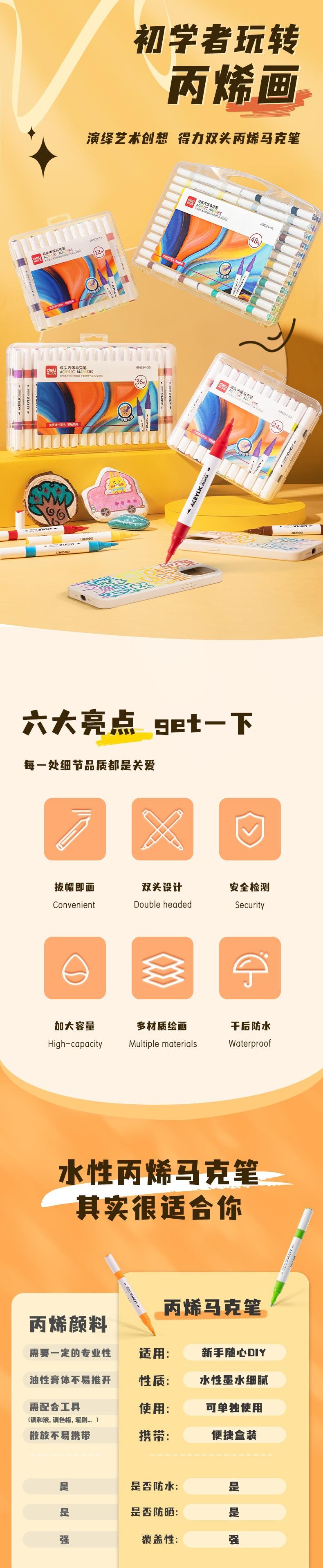 Marcador Acrílico Deli Hm924-24/36 de Color con Punta Doble, Tinta Suave y Colores Intensos para Grafiti y Dibujo