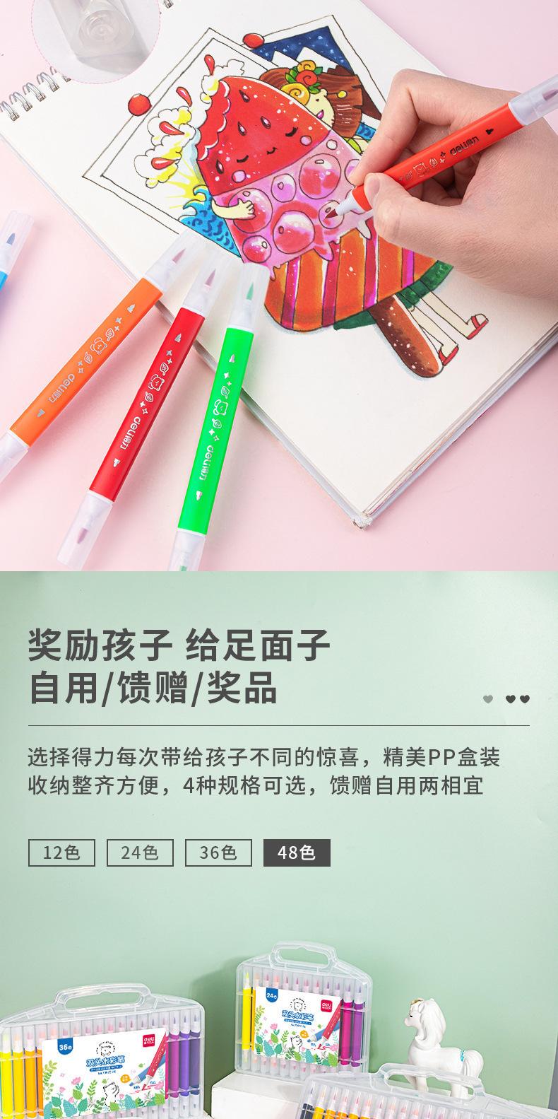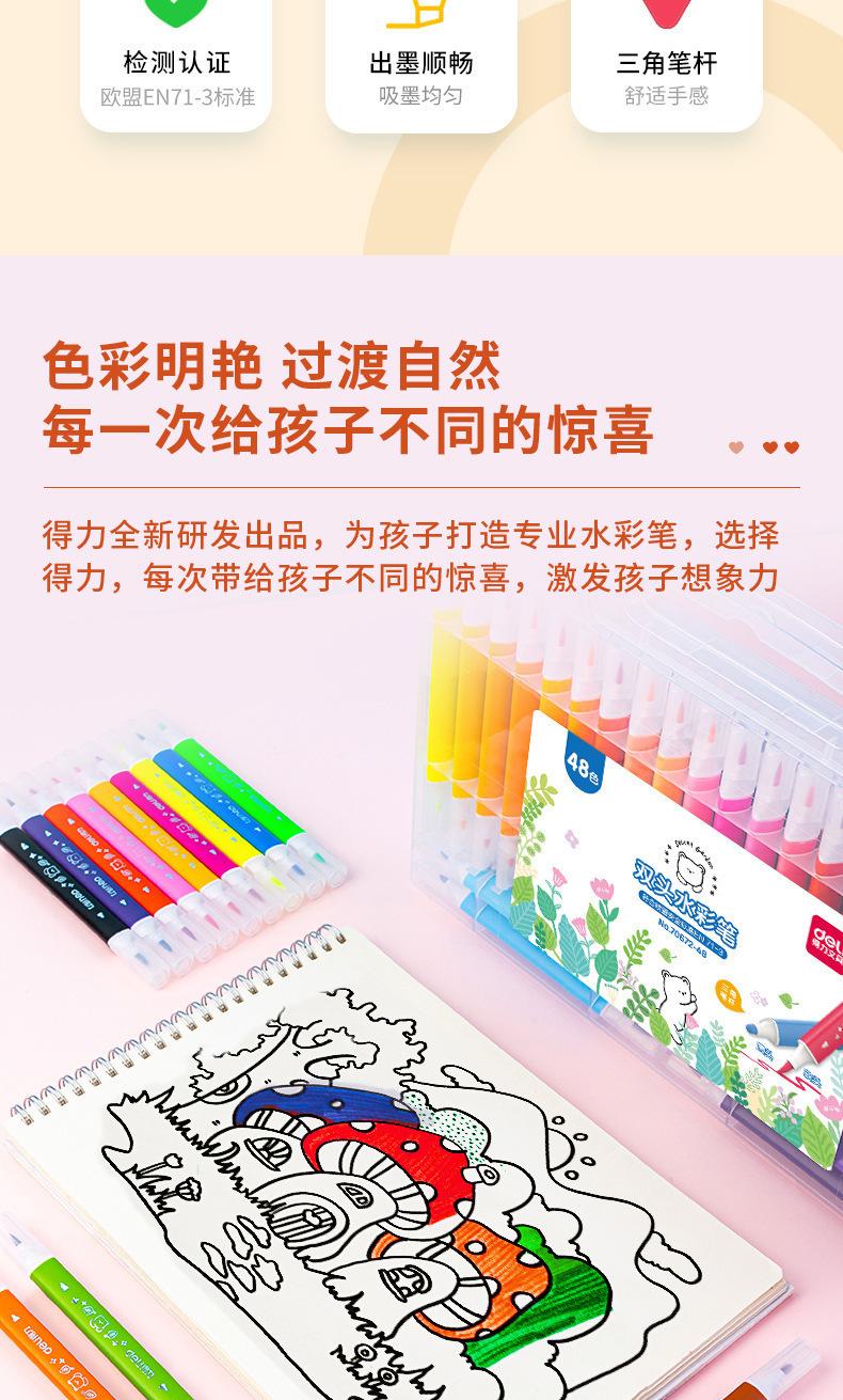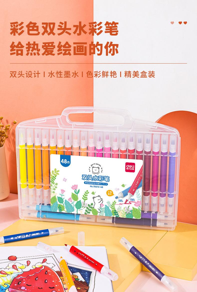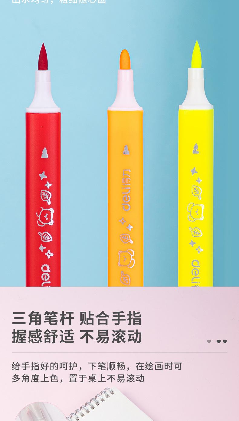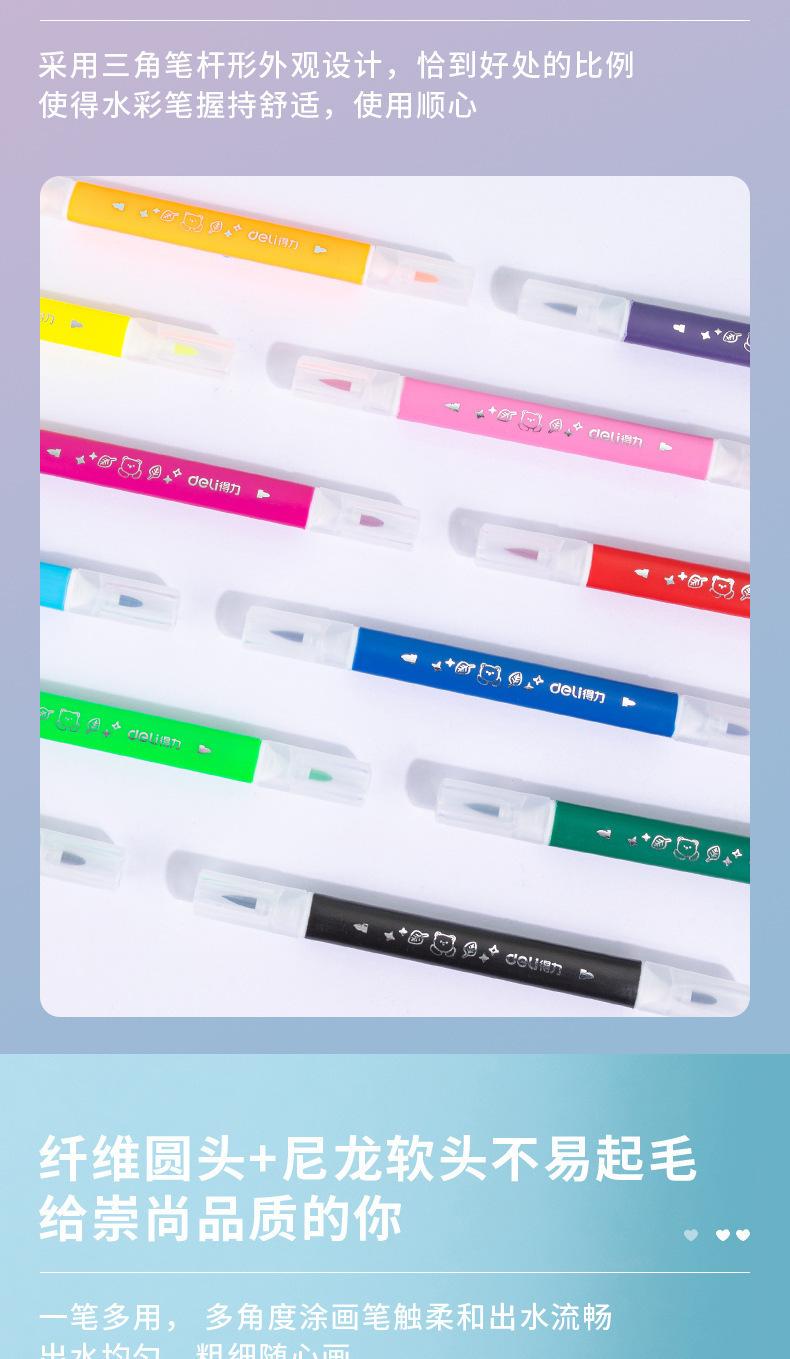Deli 70672 Set de Plumas de Acuarela Lavables de Doble Punta Plumas de Colores Punta Redonda Plumas de Colores Punta Suave Plumas de Dibujo para Niños