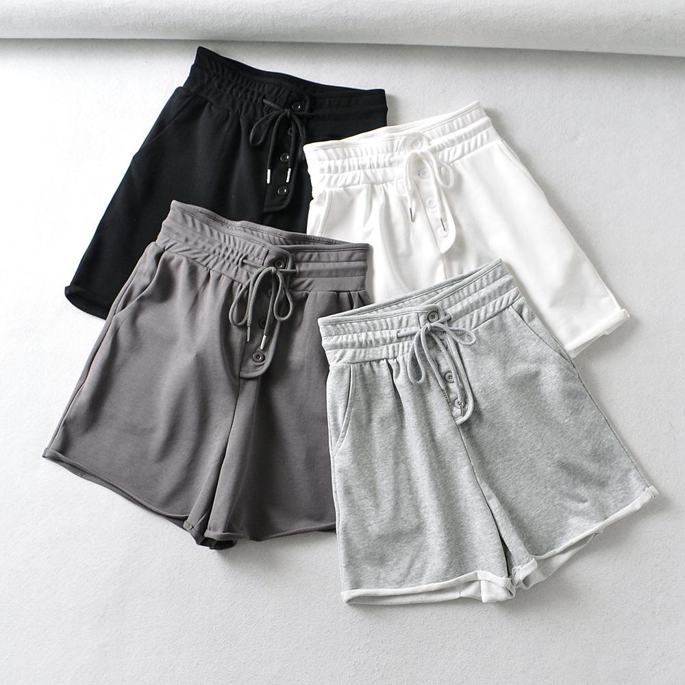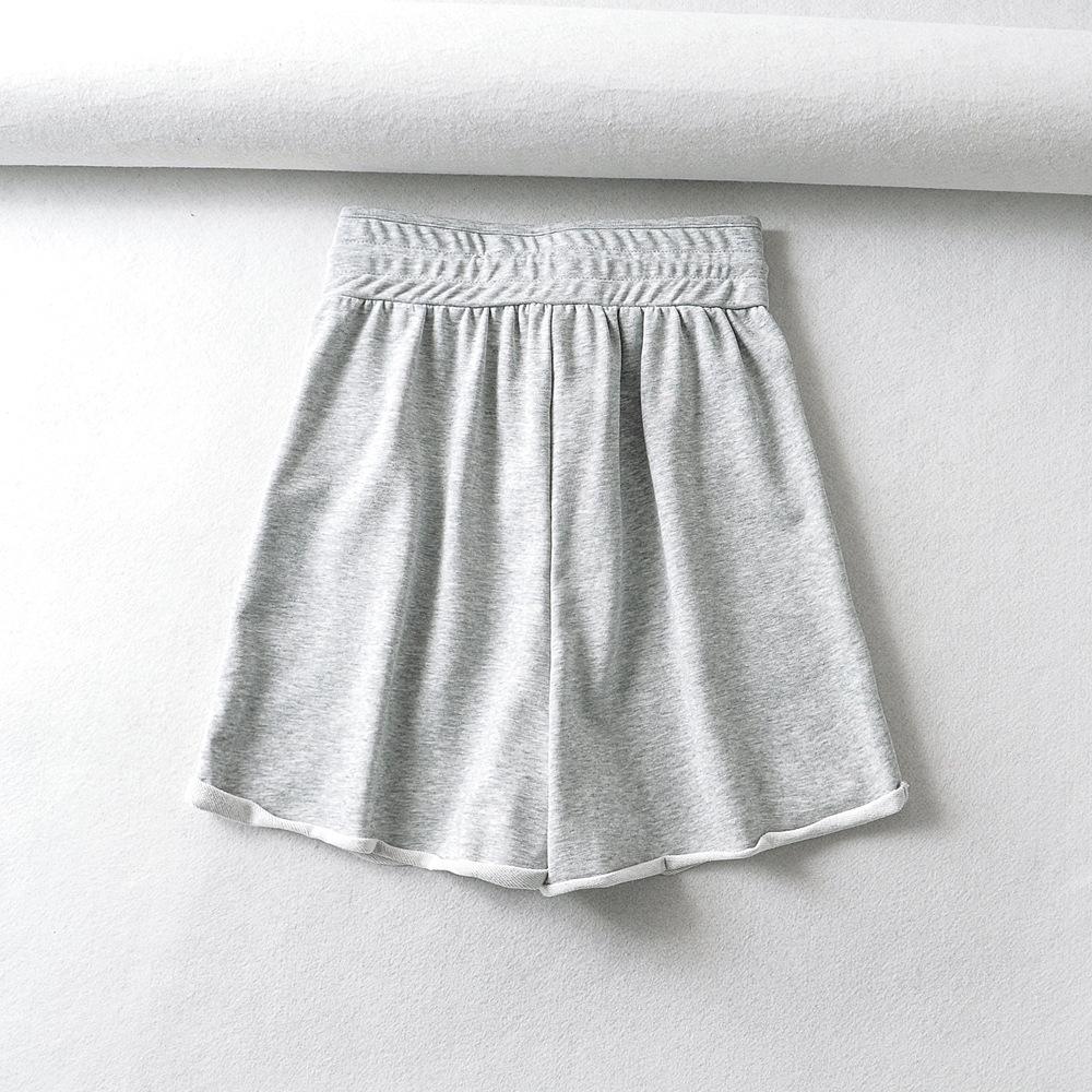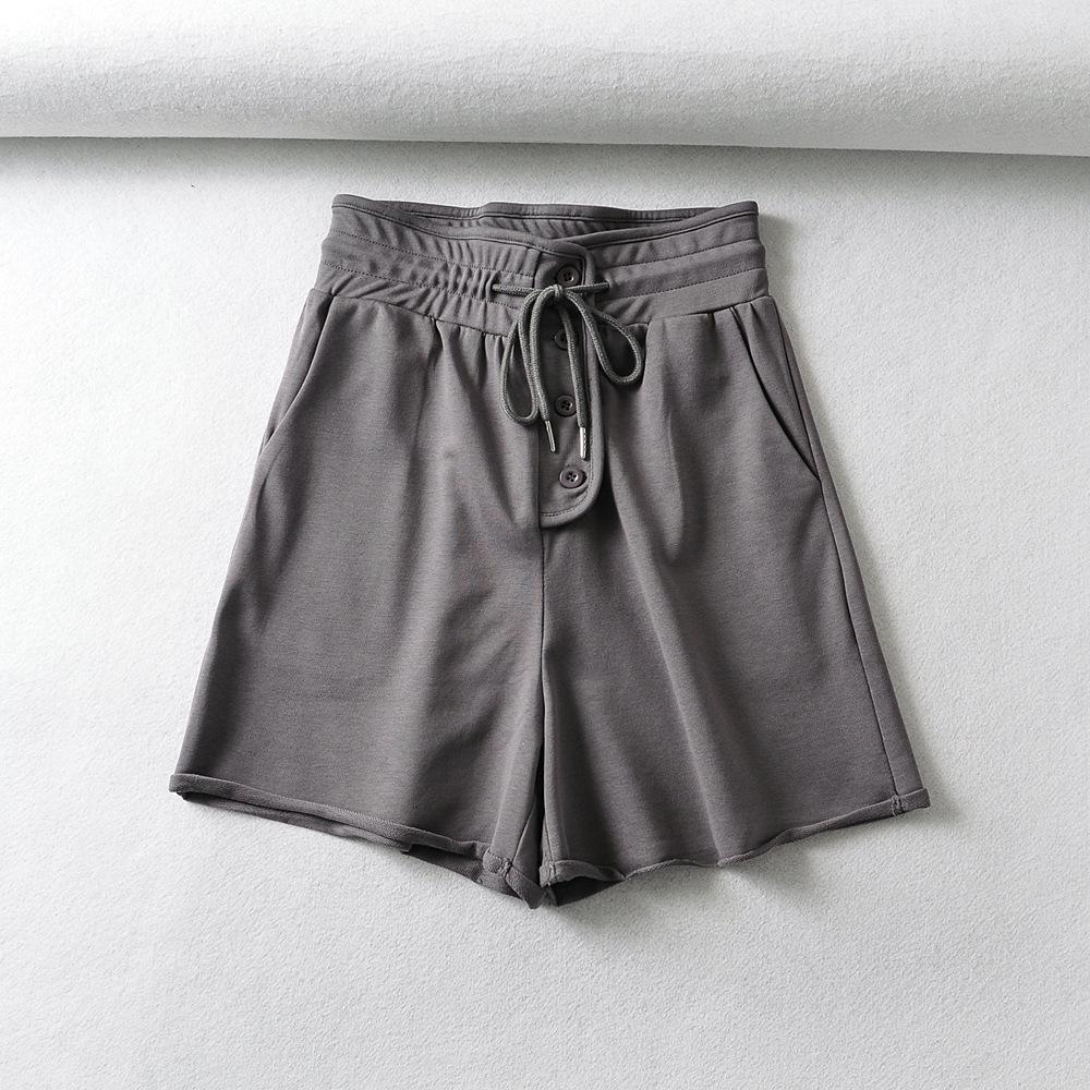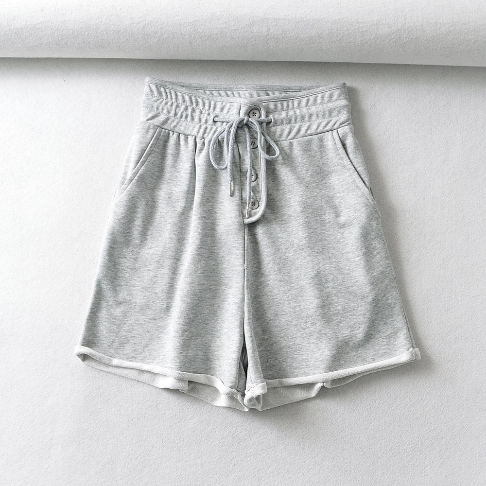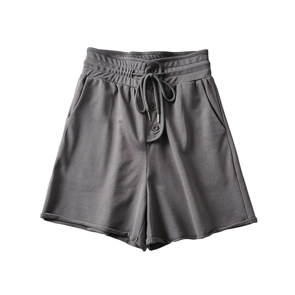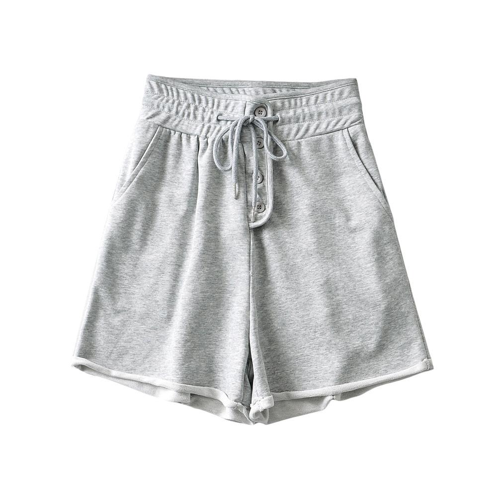 Pantalones cortos deportivos de verano para mujer, finos, holgados, para correr, informales, de cintura alta, grises, con pierna ancha, pantalones casuales