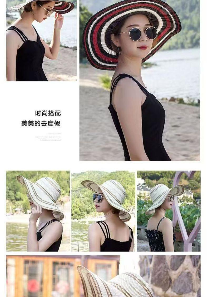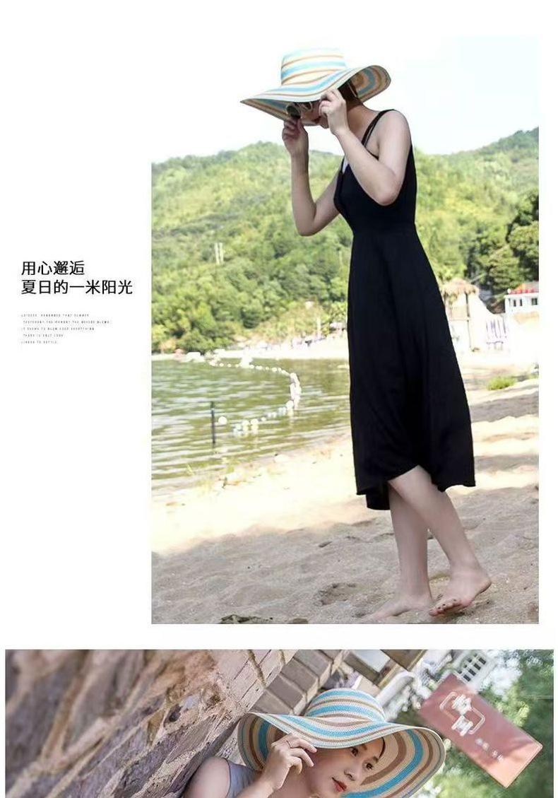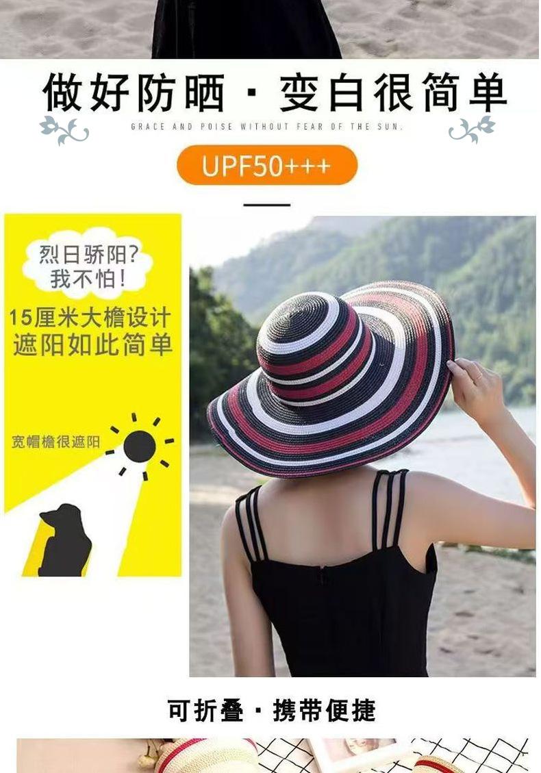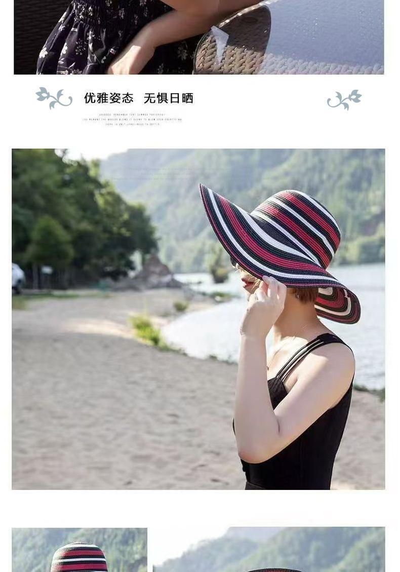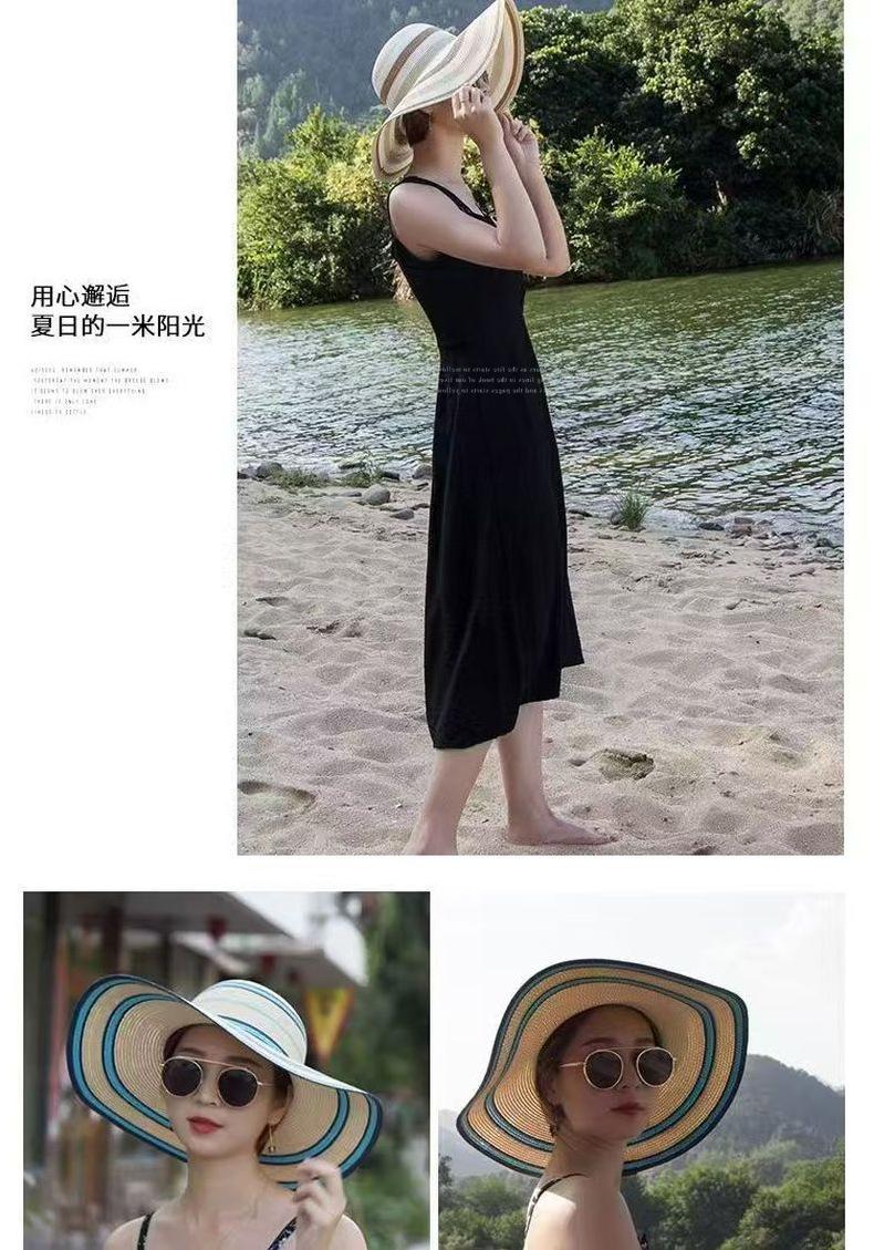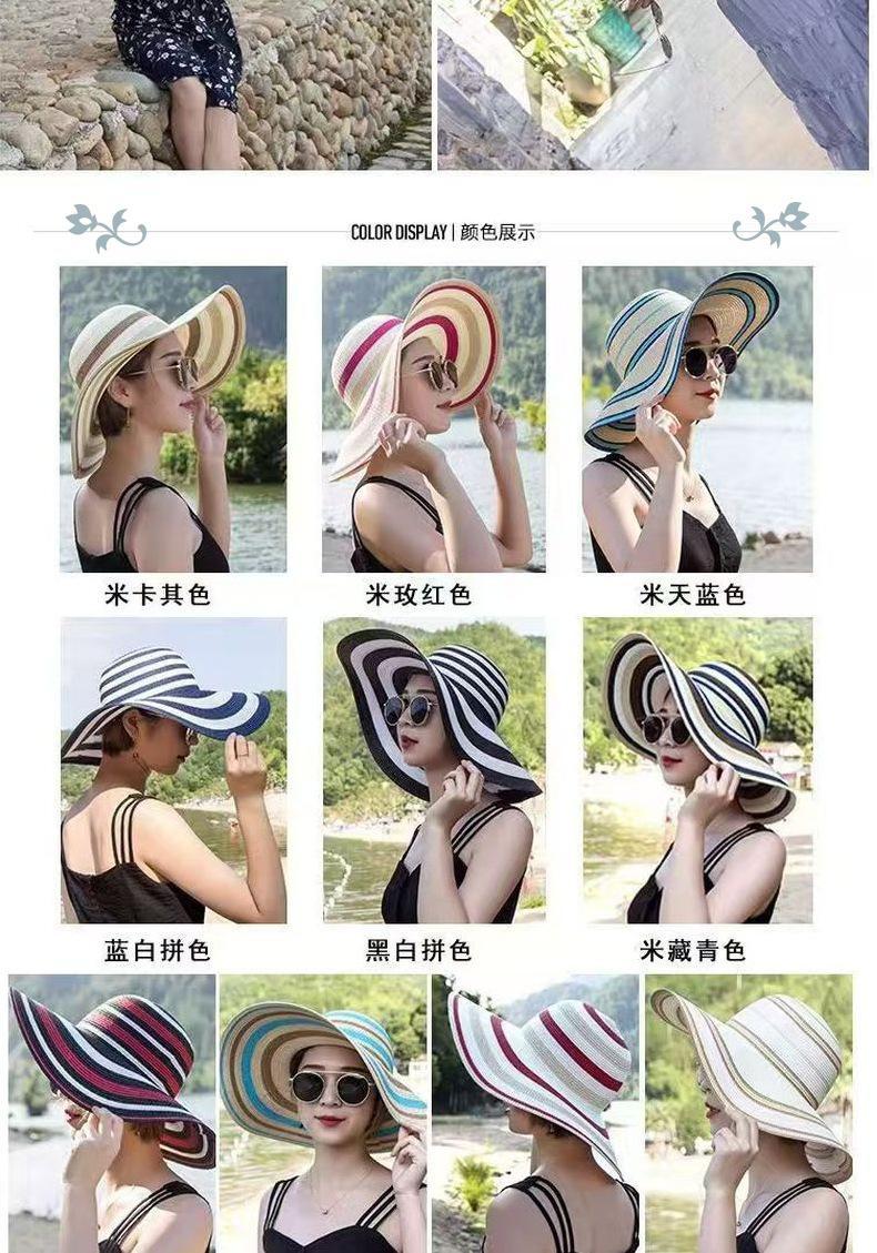 Comercio Exterior Moda Verano Protección Solar Ala Ancha Sombrero de Paja de Playa Sombrero Arcoíris Rayado Personalizado Vacaciones Sombrero de Sol para la Playa