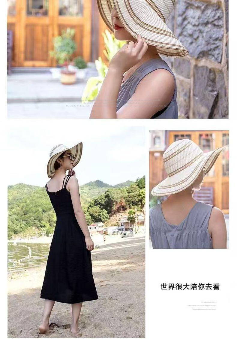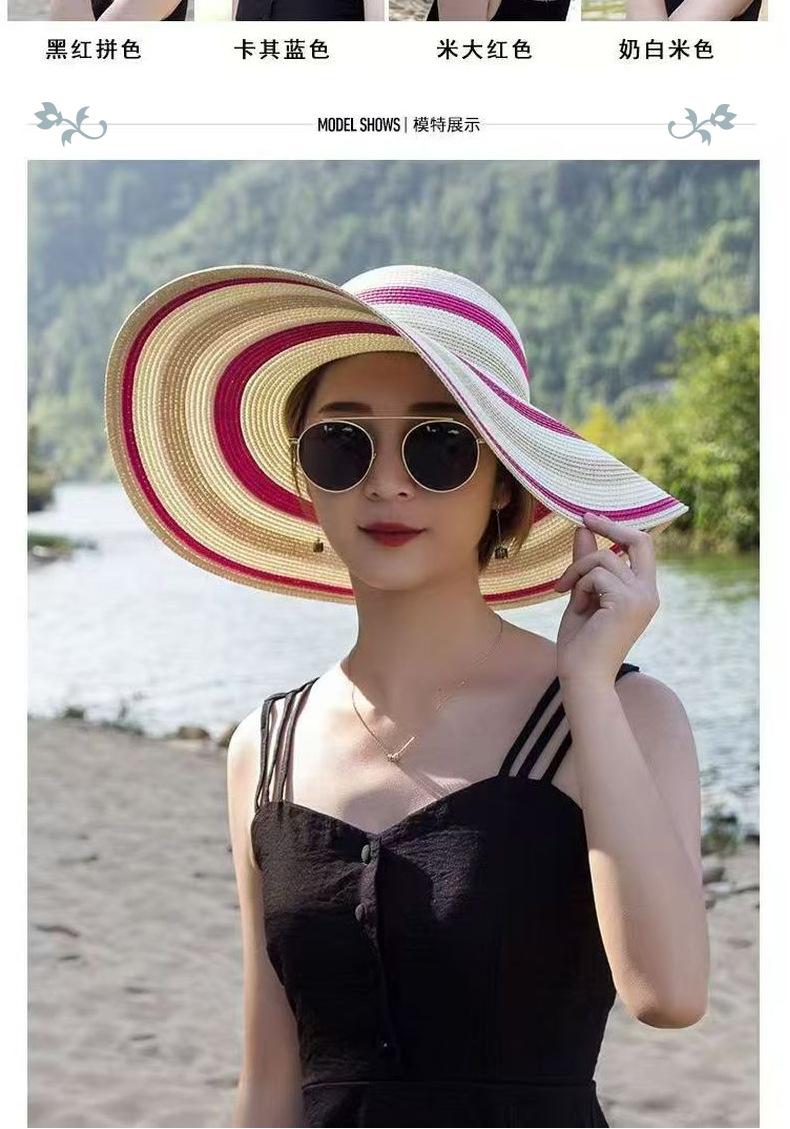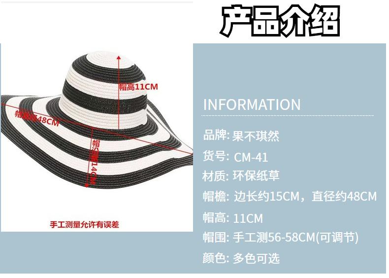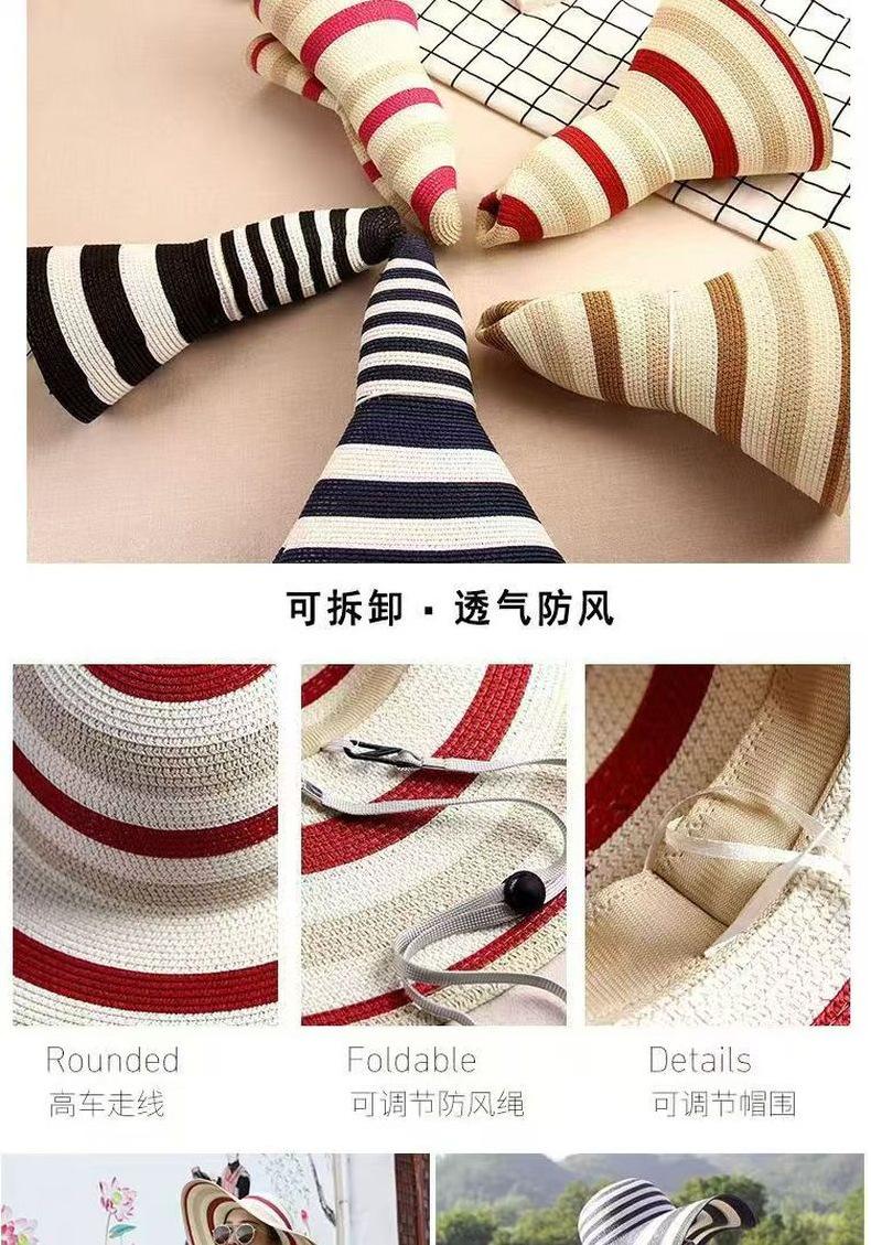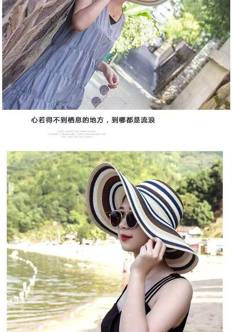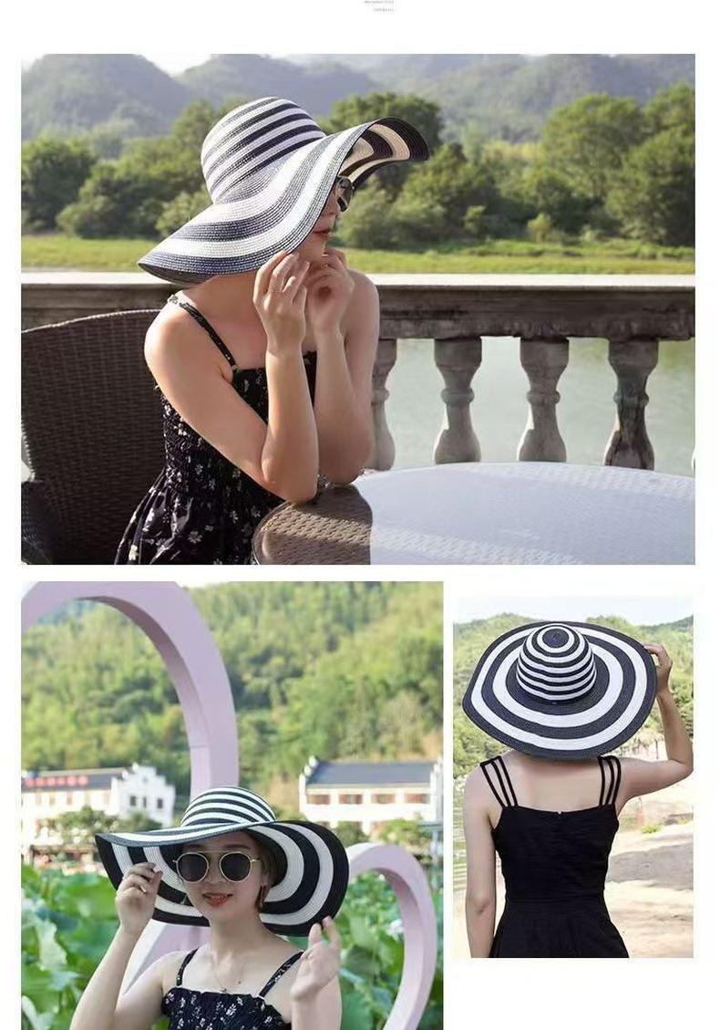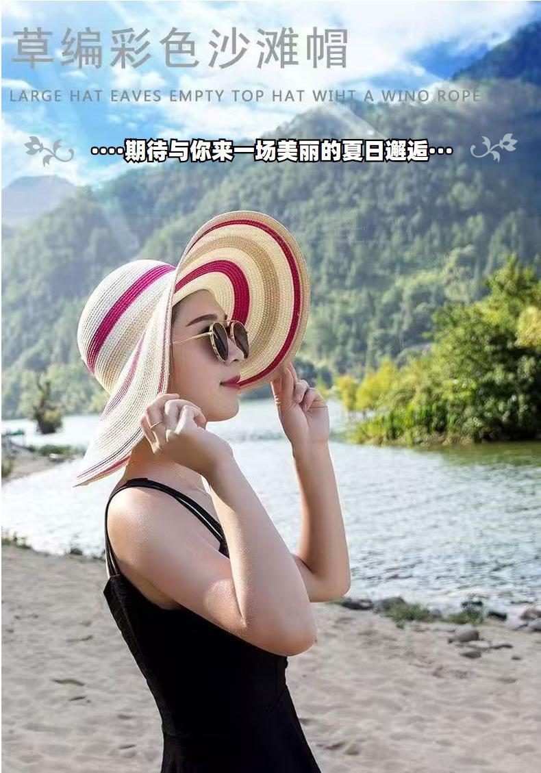 Comercio Exterior Moda Verano Protección Solar Ala Ancha Sombrero de Paja de Playa Sombrero Arcoíris Rayado Personalizado Vacaciones Sombrero de Sol para la Playa