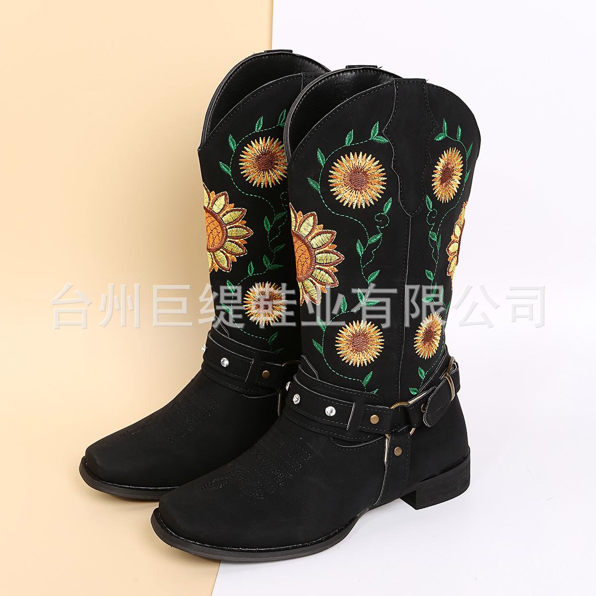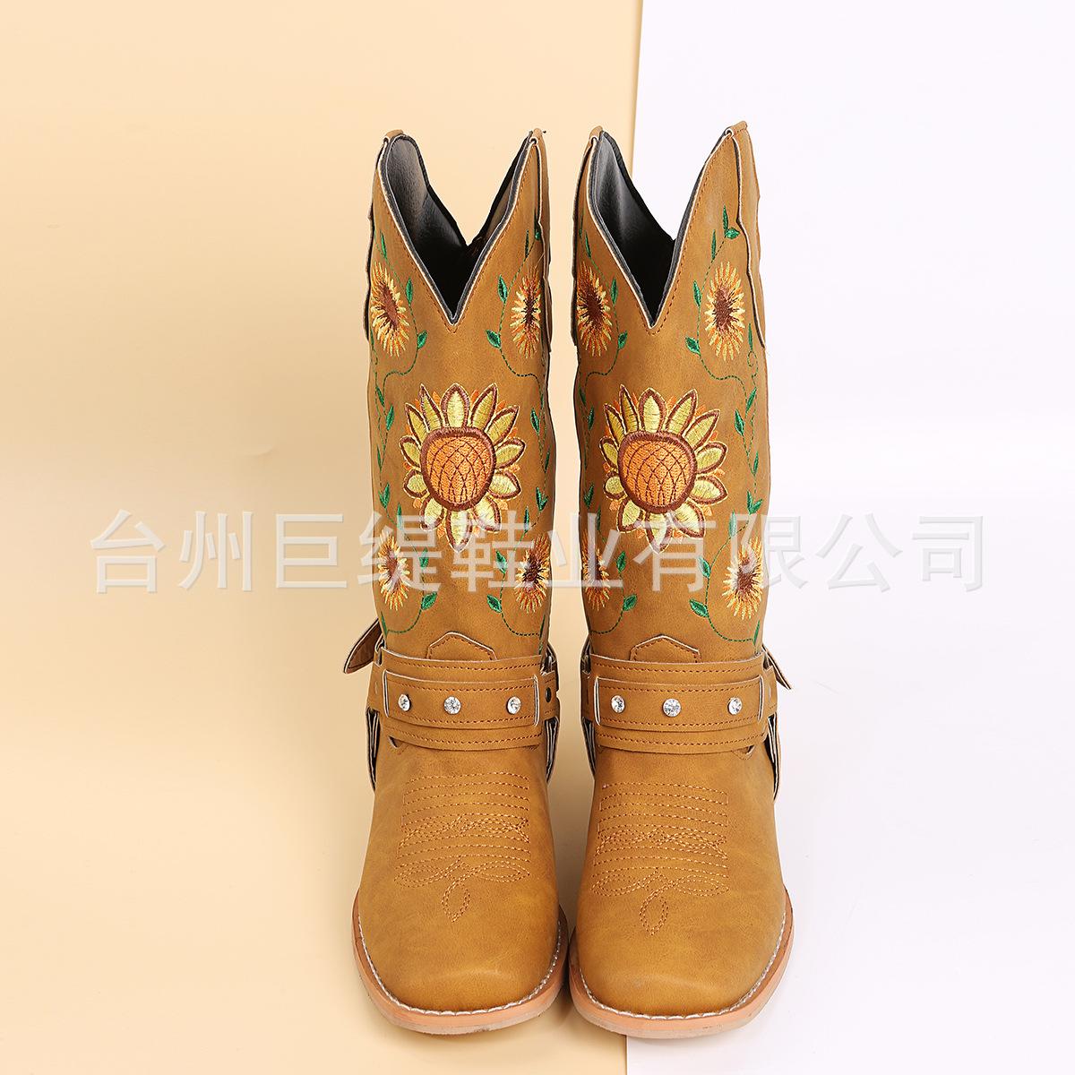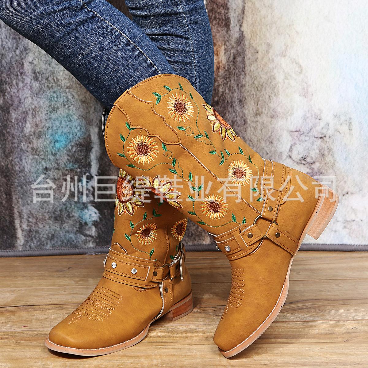 Botas de Mujer de Talla Grande para Exportación de Otoño e Invierno 2021 del Fabricante, Botas de Caballero con Pedrería de Girasol para Mujer