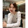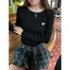 Americano 2025 Otoño Nuevo Moderno Estilo Coreano Diseño de Bordado de Corazón Cintura Plisada para Mostrar Elegante Playera Slim para Mujer