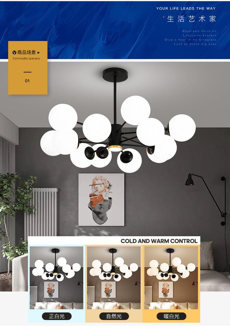 Compra Lámpara de araña para sala de estar, moderna, sencilla, atmosférica, principal, nórdica, de lujo, con diseño de frijol mágico, molecular, para toda la casa, paquete combinado. al por mayor en Joom.pro