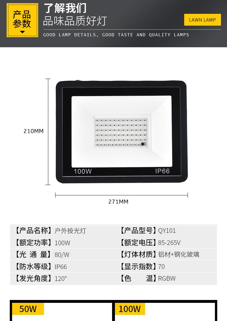 Proyector LED 50W100WRGB, reflector, luz impermeable, luz de inundación colorida para exteriores, venta al por mayor transfronteriza