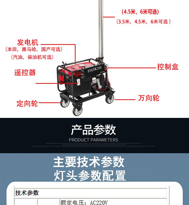 4*500w halogen tungsten lamp-3kw domestic gasoline generator, 4*1000w halogen tungsten lamp-5kw domestic gasol...