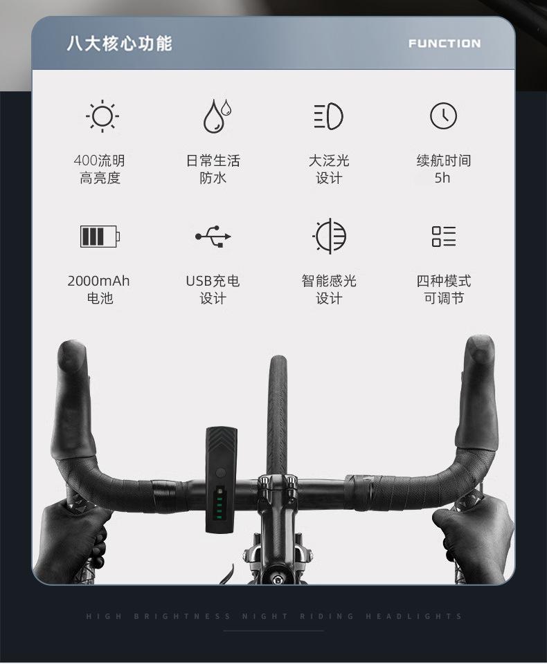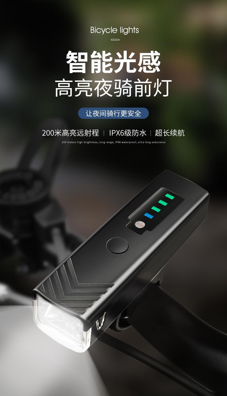 Luz de bicicleta inteligente de inducción, luz nocturna para ciclismo de montaña, carga multifuncional, luz potente, equipo de ciclismo.