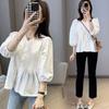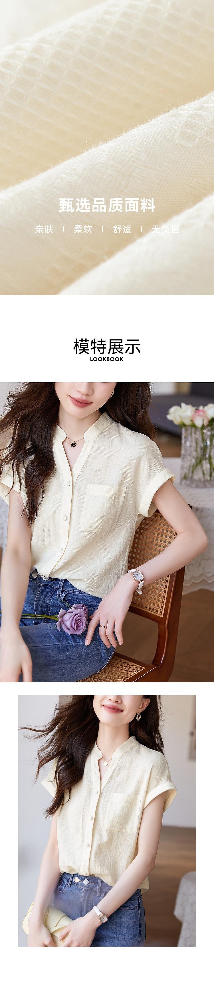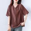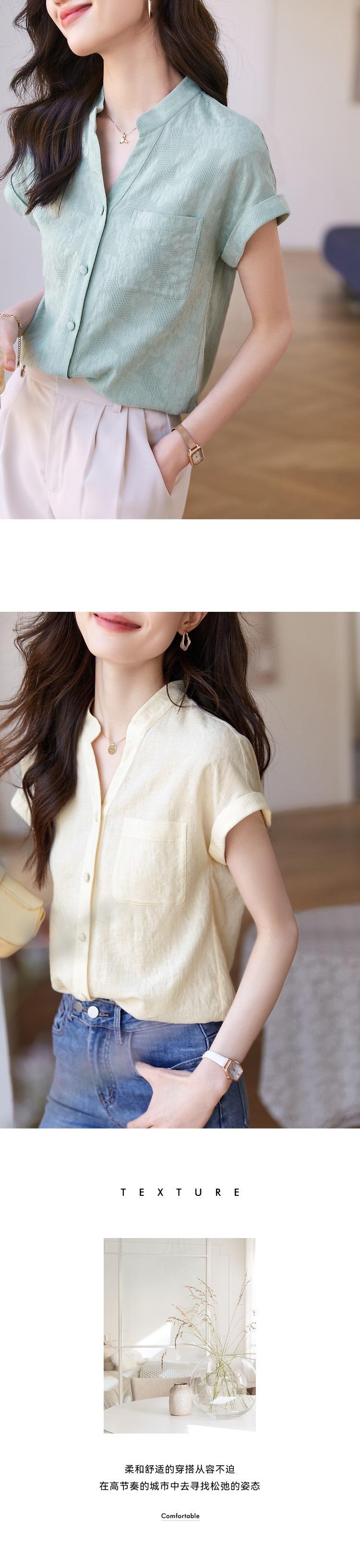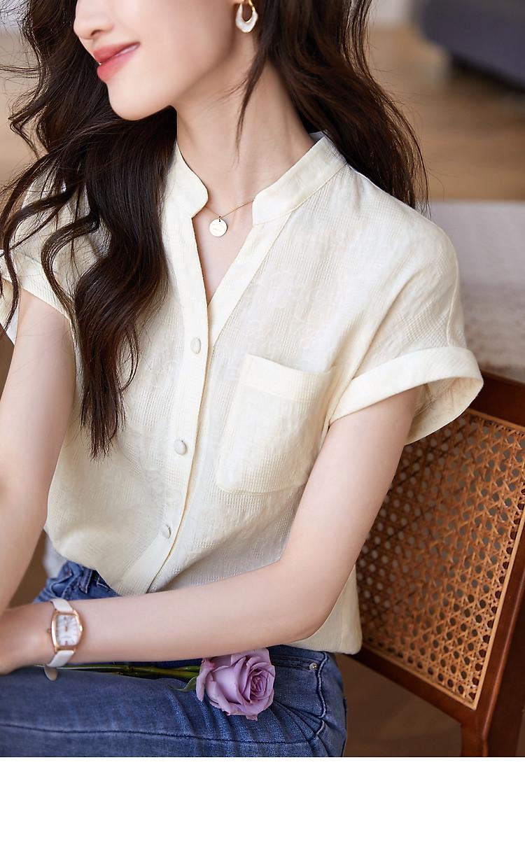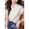 2024 verano nueva moda casual textura algodón lino con manga hombro camisa de mujer camisa jacquard algodón lino