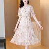 Verano 2025 Nuevo Retro Francés Cintura Adelgazante Look Asimétrico con Volantes Elegante Vestido de Manga Corta Falda de Mujer