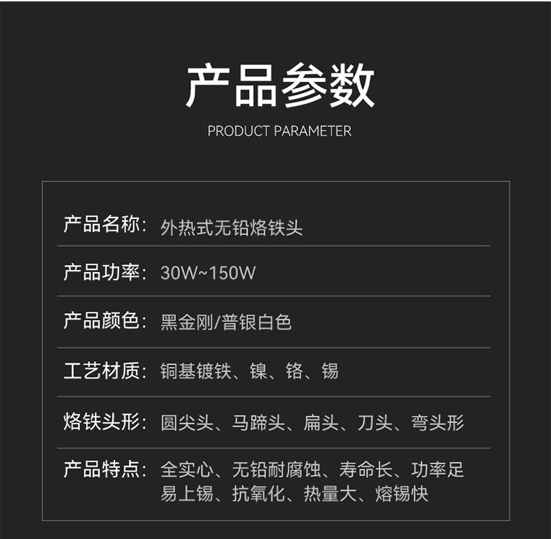 Venta directa de fábrica de 30 40 60 W, boquilla de soldador sin plomo con protección ambiental, cabezal de soldador de calentamiento externo, cabezal de corte con punta de herradura