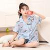 Pijamas de verano para niñas, de manga corta, de seda helada, con aire acondicionado, bonito conjunto de ropa para el hogar con solapa de dibujos animados para niñas