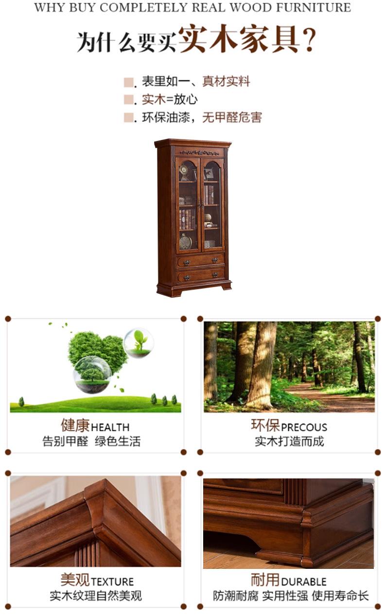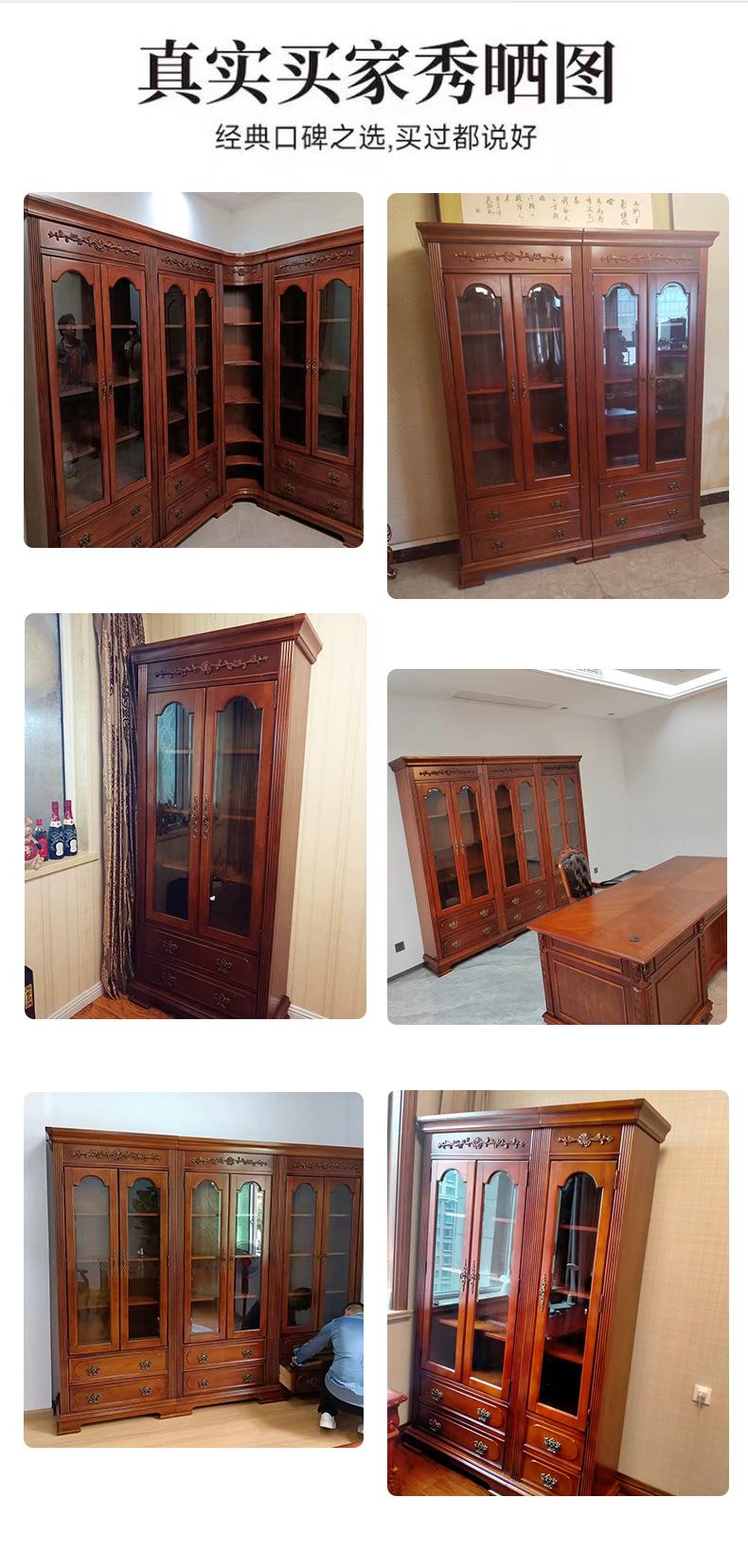 Compra Librería de madera maciza estilo americano, vitrina de almacenamiento de gran capacidad, armario de estudio, armario de suelo, estantería de pared combinada al por mayor en Joom.pro