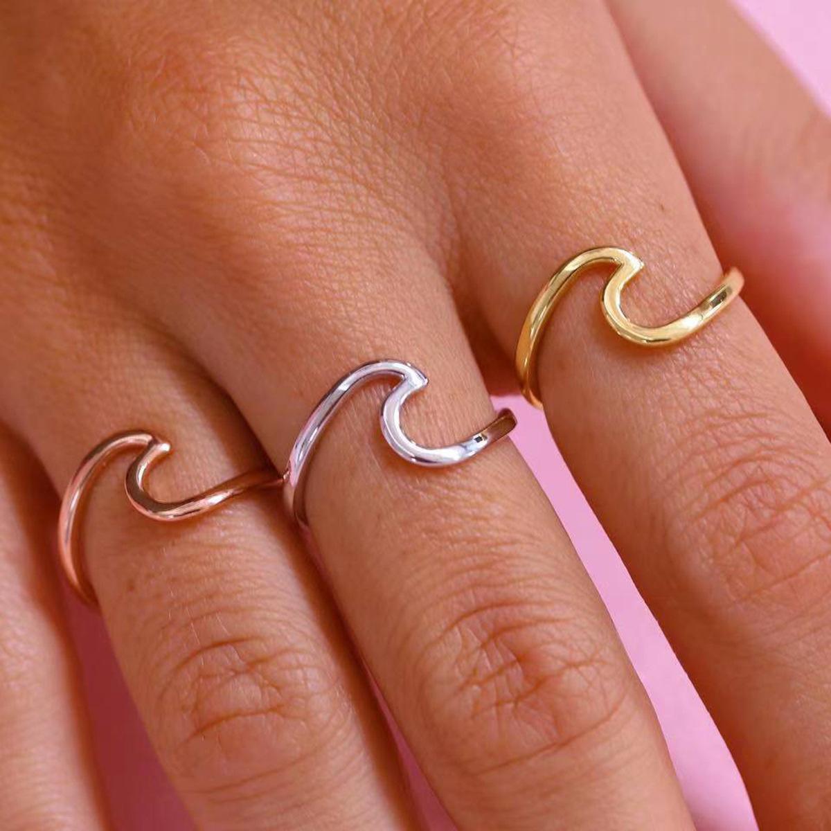 Anillo Wish de venta caliente transfronterizo, anillo de onda abstracta de moda retro, estilo europeo y americano, gema abierta en stock al por mayor