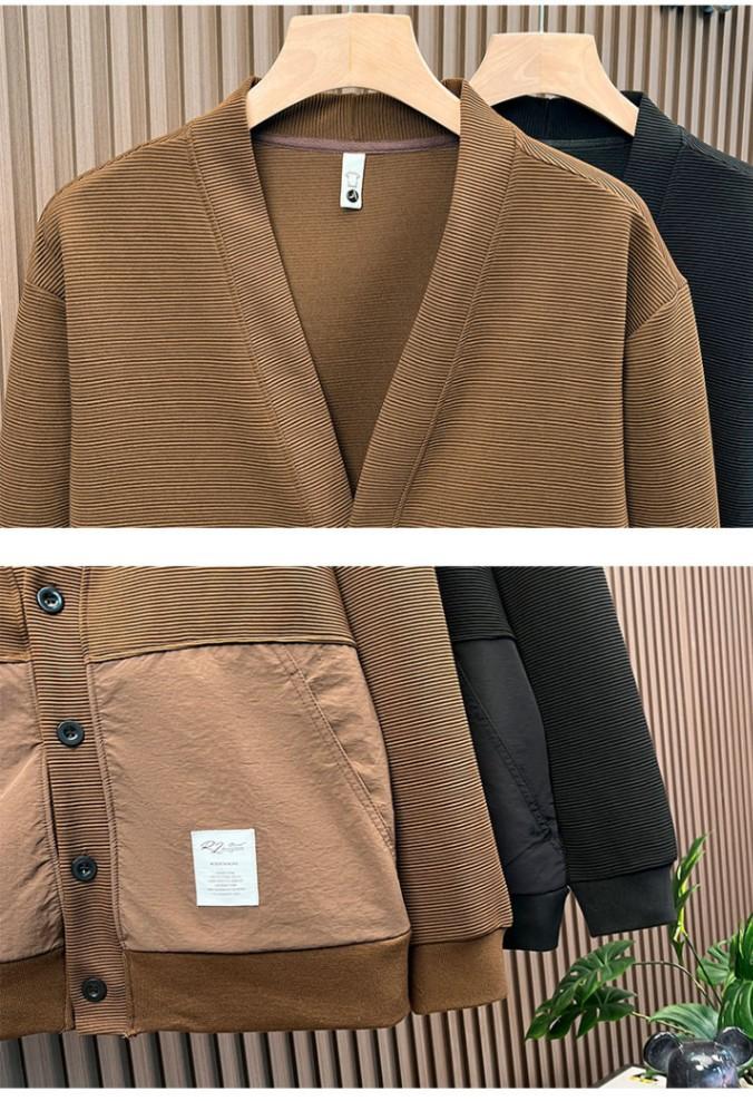 Cárdigan suéter de punto con cuello en V y botonadura simple para hombre, diseño nicho 2025 otoño e invierno, nueva tendencia, chaqueta de estilo holgado y perezoso