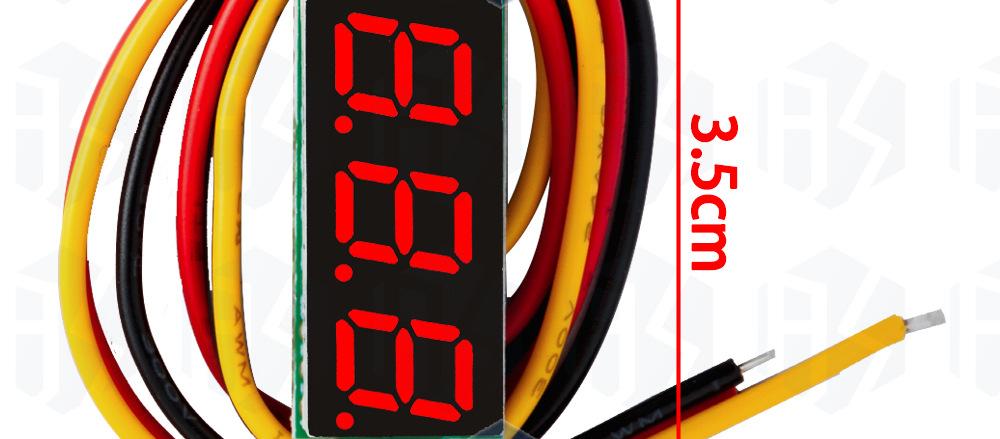 Cabezal de voltímetro digital CC ultracompacto de 0.28 pulgadas, pantalla digital, ajustable, tres hilos, CC0-100V, voltímetro de batería