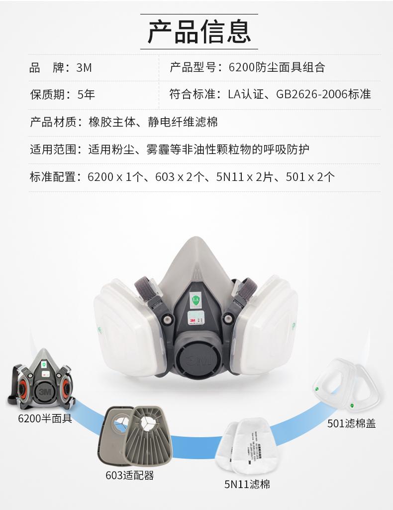 Mascarilla antipolvo 3M6200 KN95 antivirus, para decoración industrial, pulido y protección laboral, transpirable para hombres y mujeres.