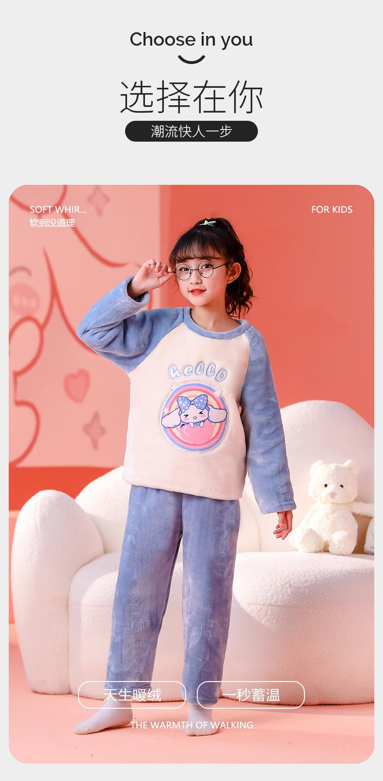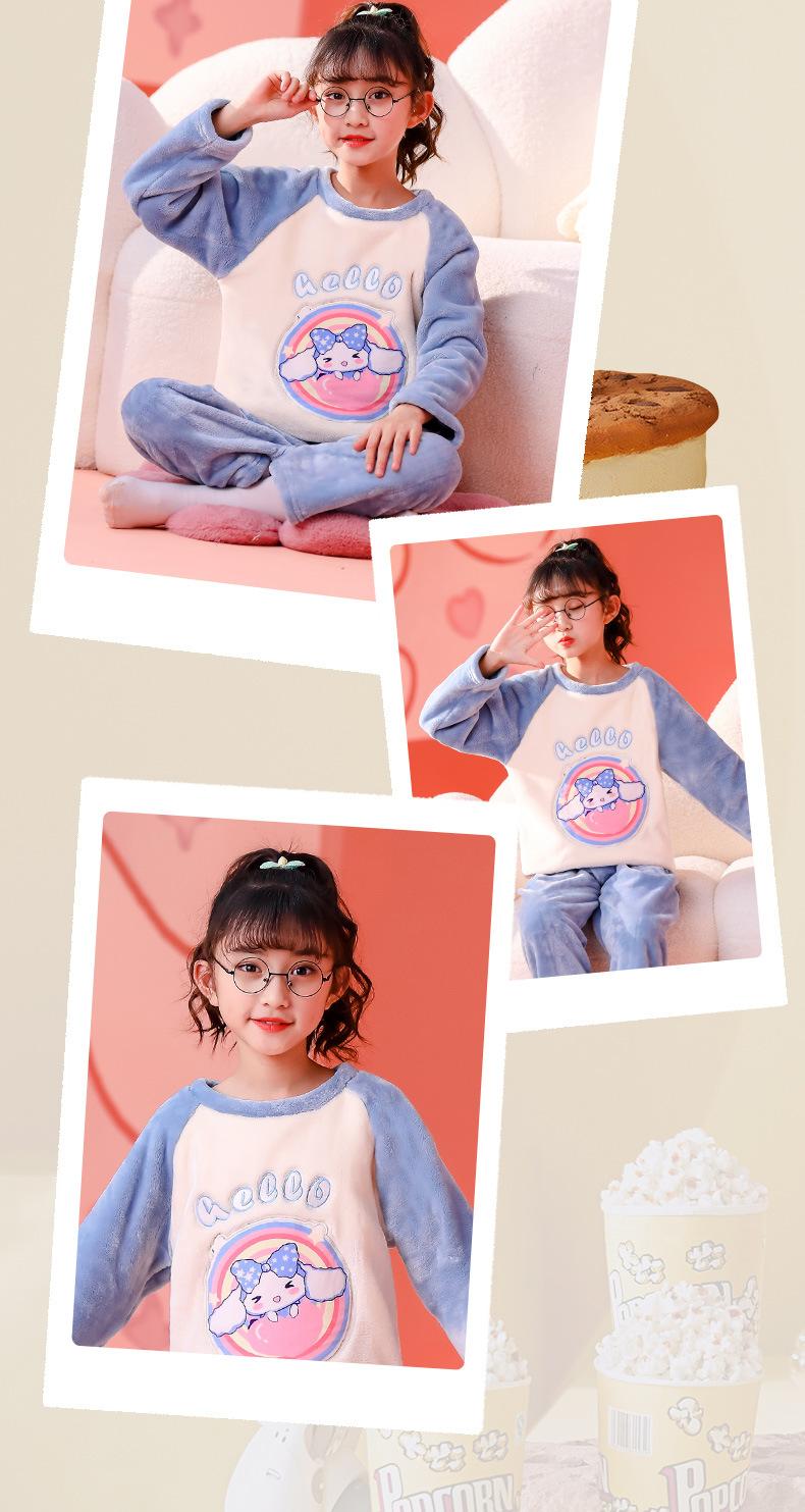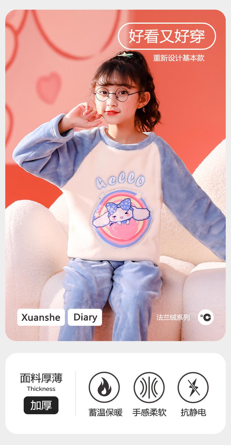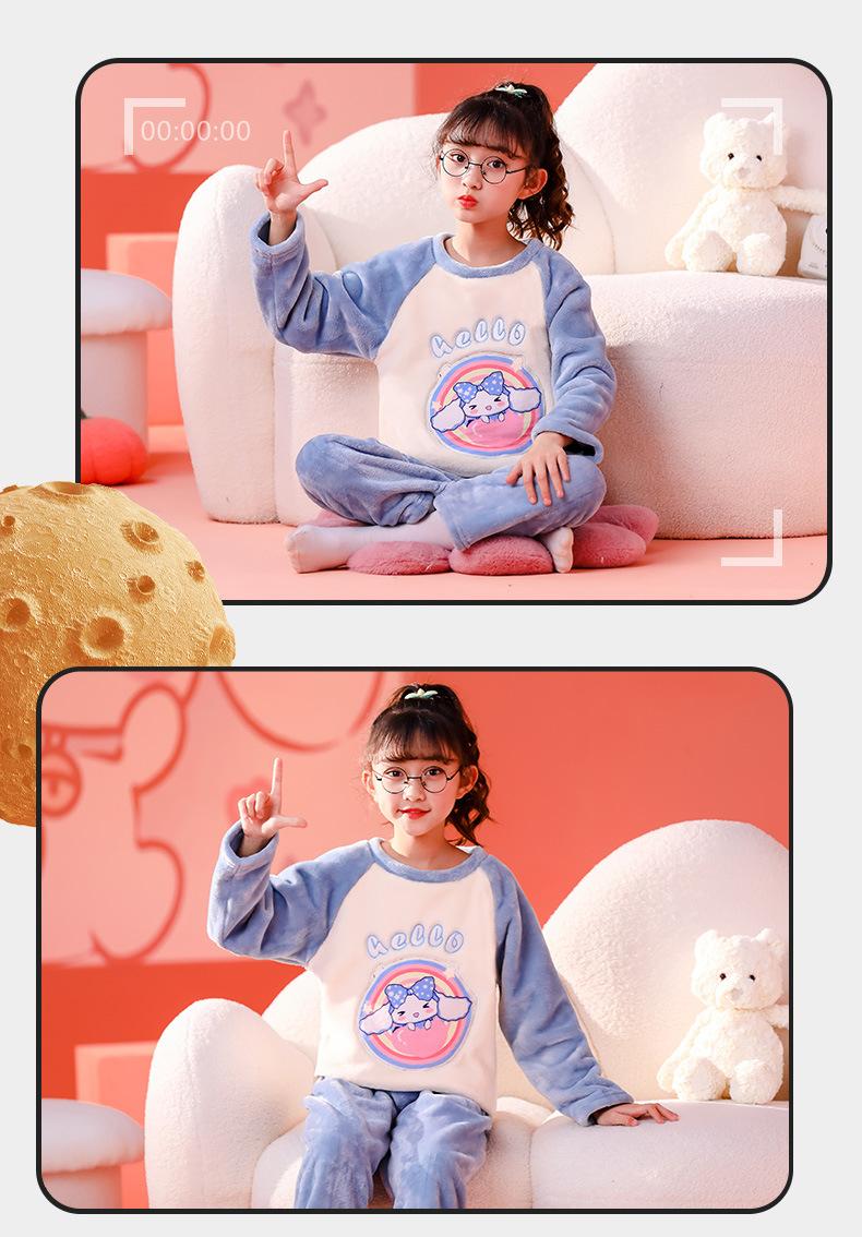 Pijamas de franela de invierno para niños, nuevos, de cuello redondo, con dibujos animados, para niñas medianas y grandes, ropa de dormir cálida para el hogar