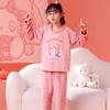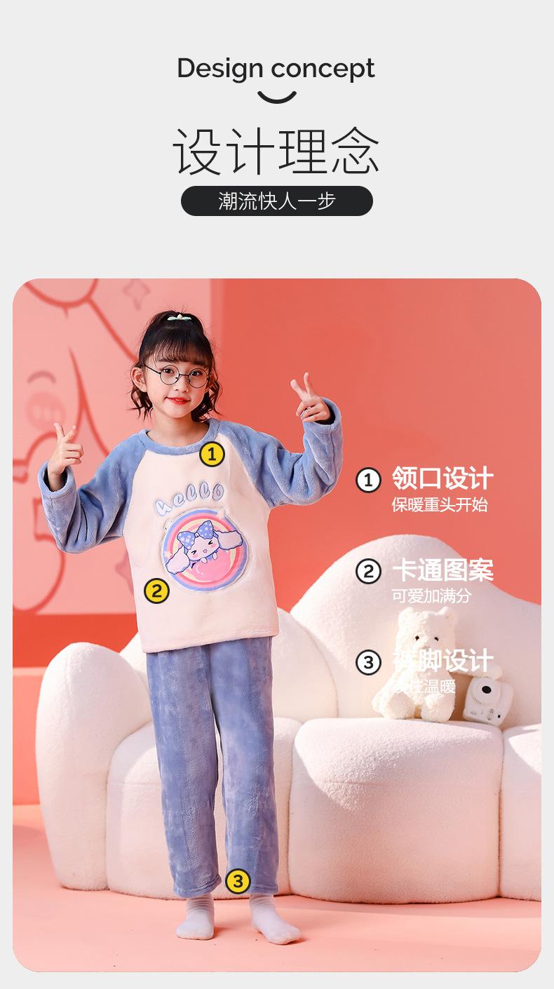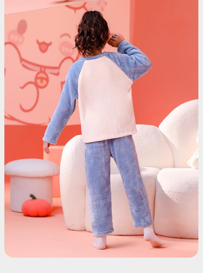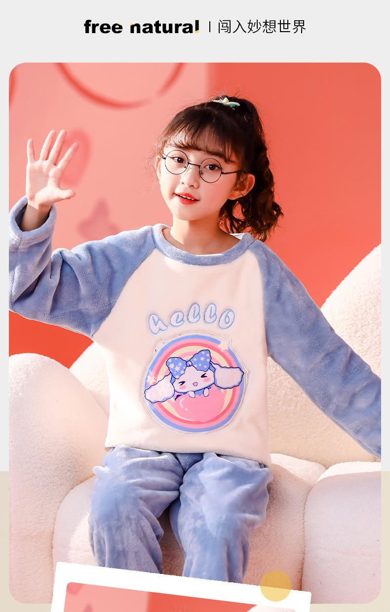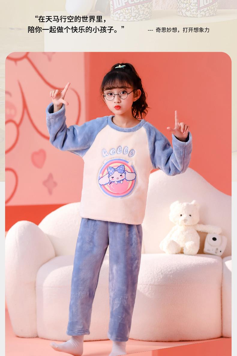 Pijamas de franela de invierno para niños, nuevos, de cuello redondo, con dibujos animados, para niñas medianas y grandes, ropa de dormir cálida para el hogar