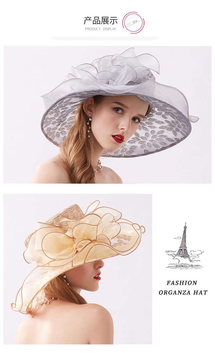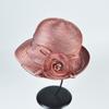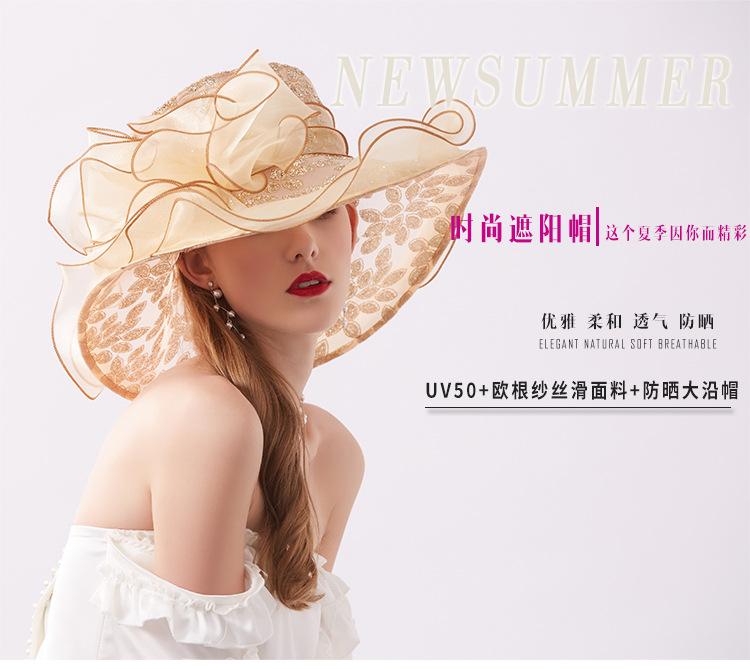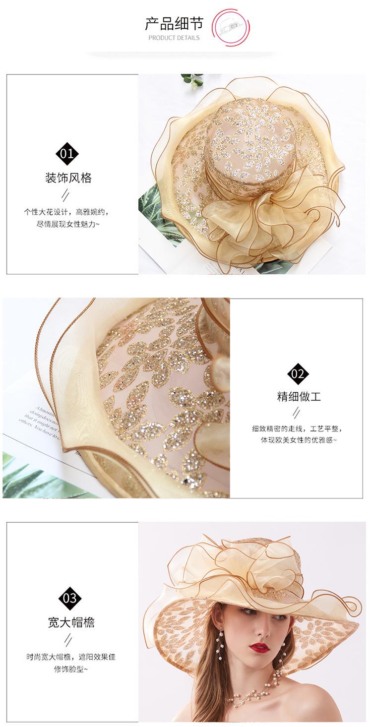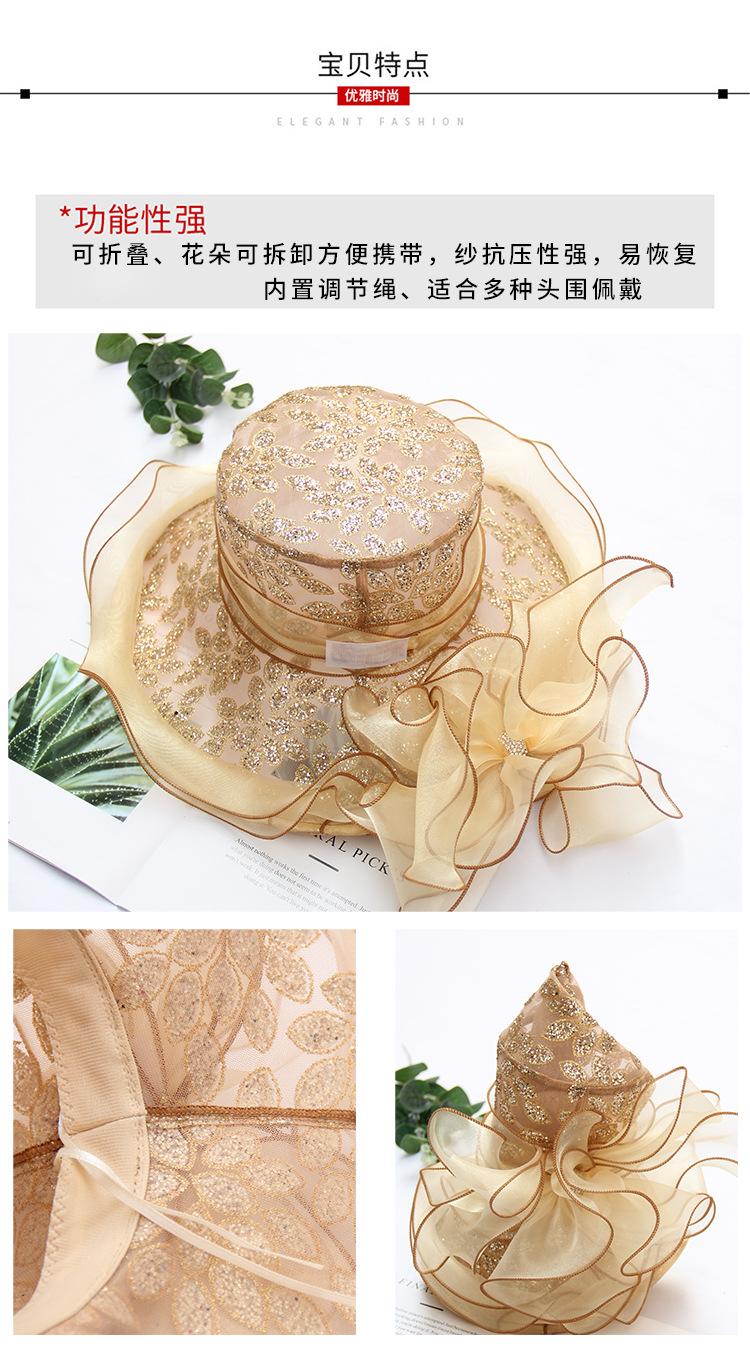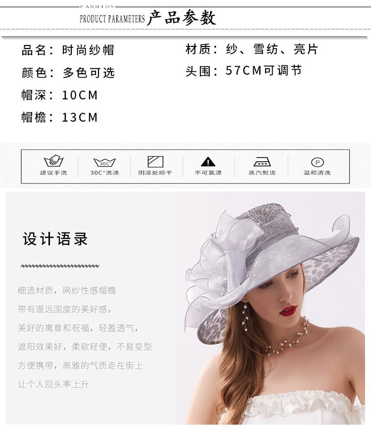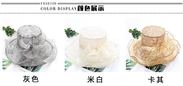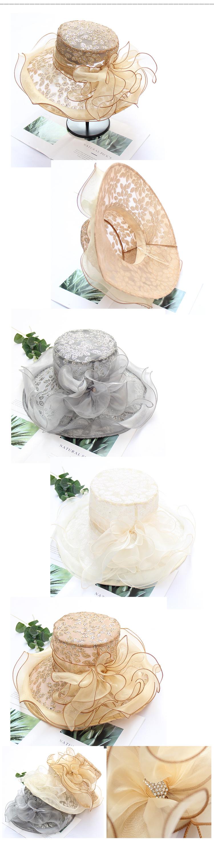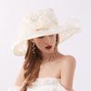 Sombrero de copa plana con ala ancha y pedrería, sombrero de sol de organza con flores de malla para mujer, verano, exterior, protección solar, sombrero de sol, gasa, sombrero fresco