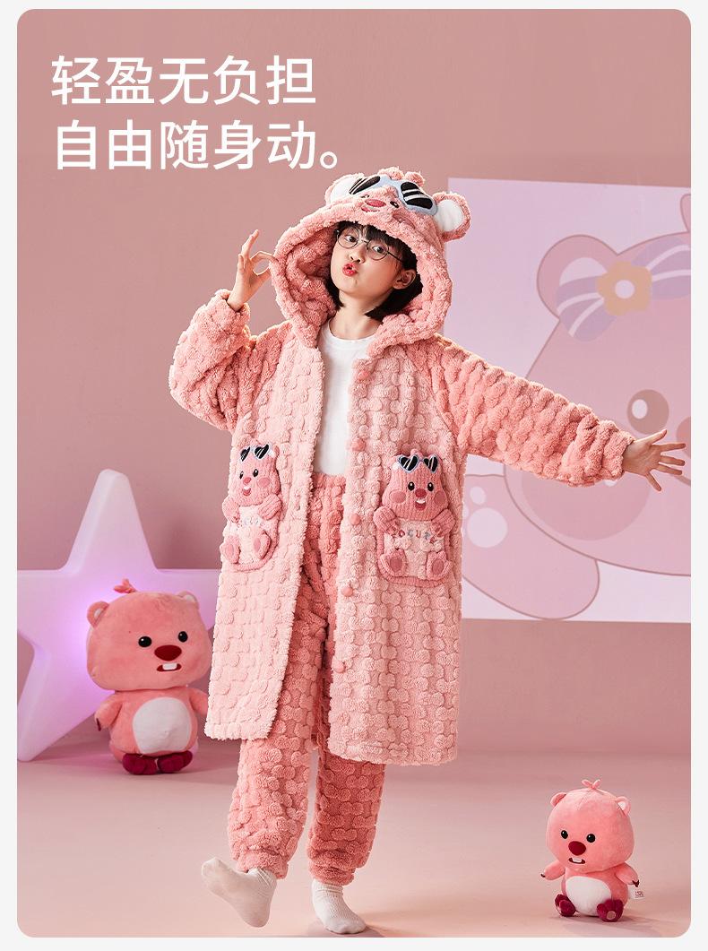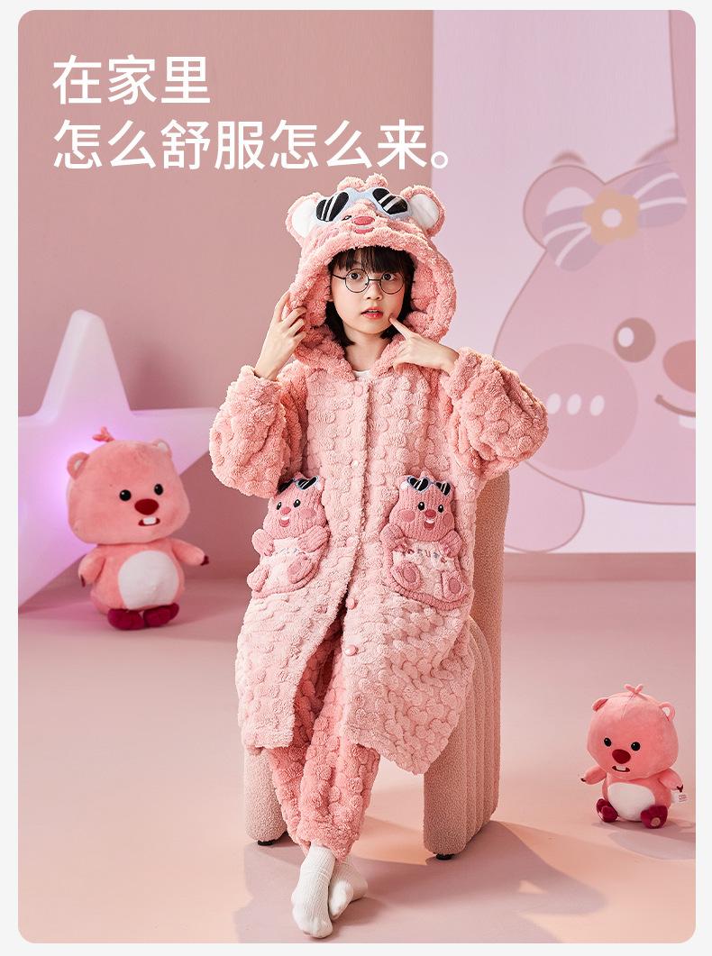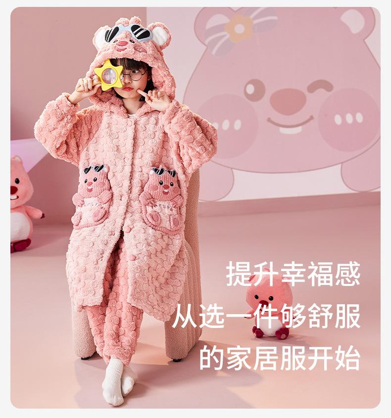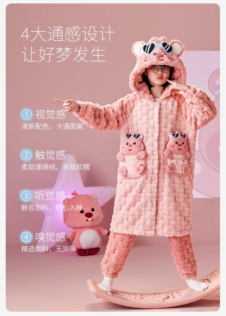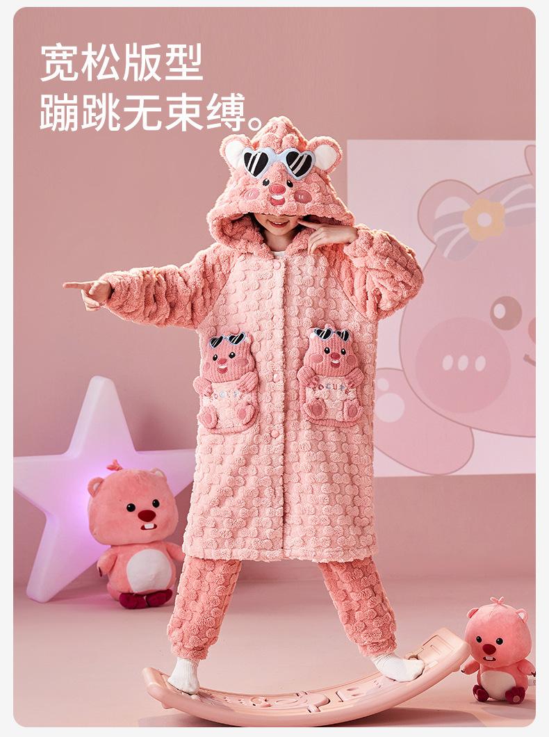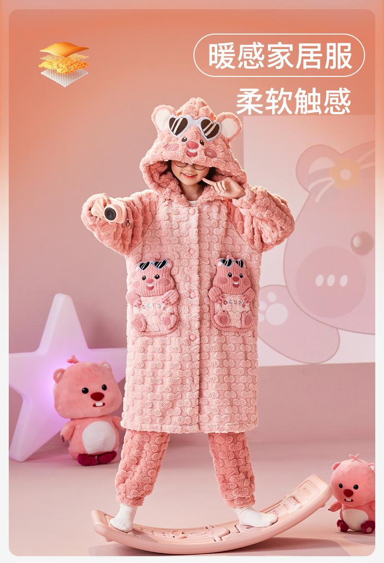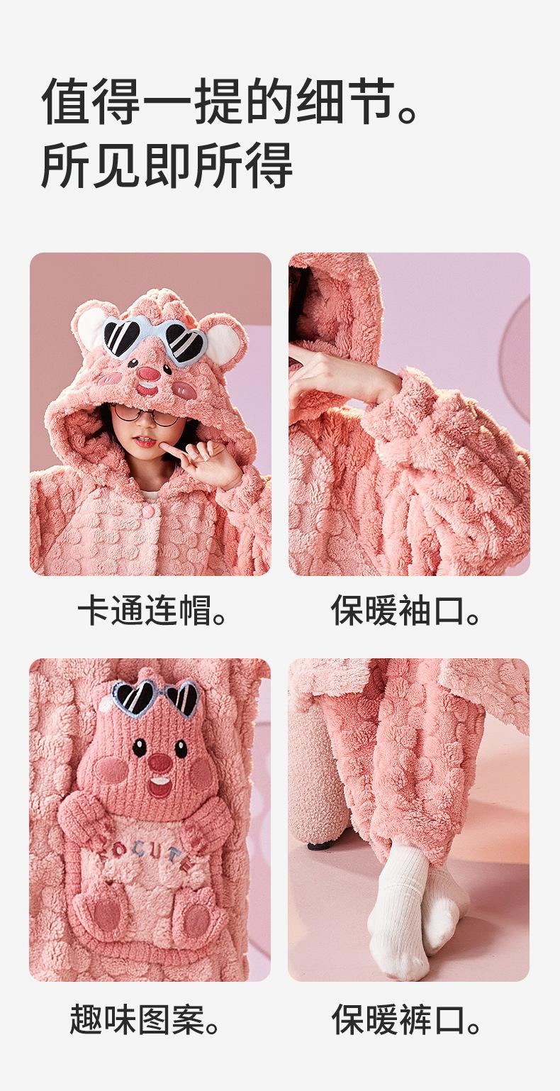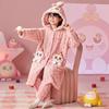Pijamas infantiles de lana coral de otoño e invierno de comercio exterior, camisón para niñas, bonito camisón con capucha de dibujos animados, ropa para el hogar madre-hija, padre-hijo