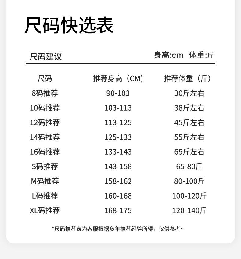 Size 8 [90-103cm recommended], Size 10 [recommended 103-113 cm], Size 12 [recommended 113-125cm], Size 14 [rec...