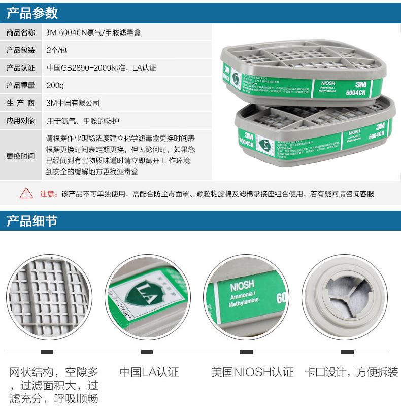 3M Máscara de Gas Filtro de Carbón Activado Caja 6004CN Químico Pesticida Amoníaco Metilamina Caja de Filtro Paquete de 2