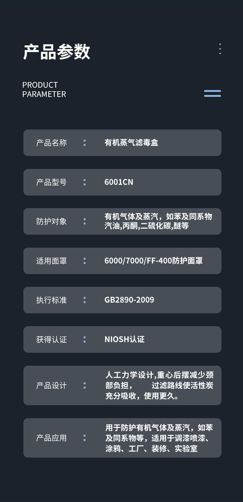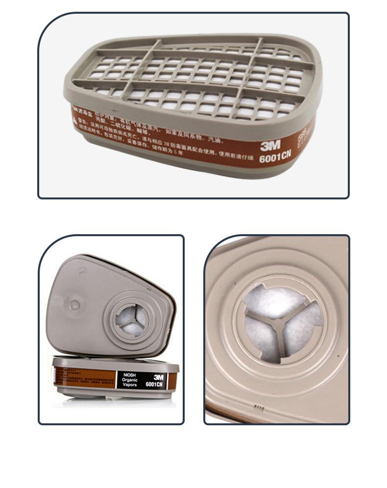 3M6001CN Caja de Filtro para Veneno Anti-Vapor Orgánico Caja de Filtro Pintura Químico Carbón Activado Accesorios para Máscara de Gas Gris