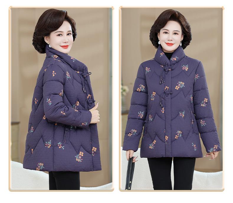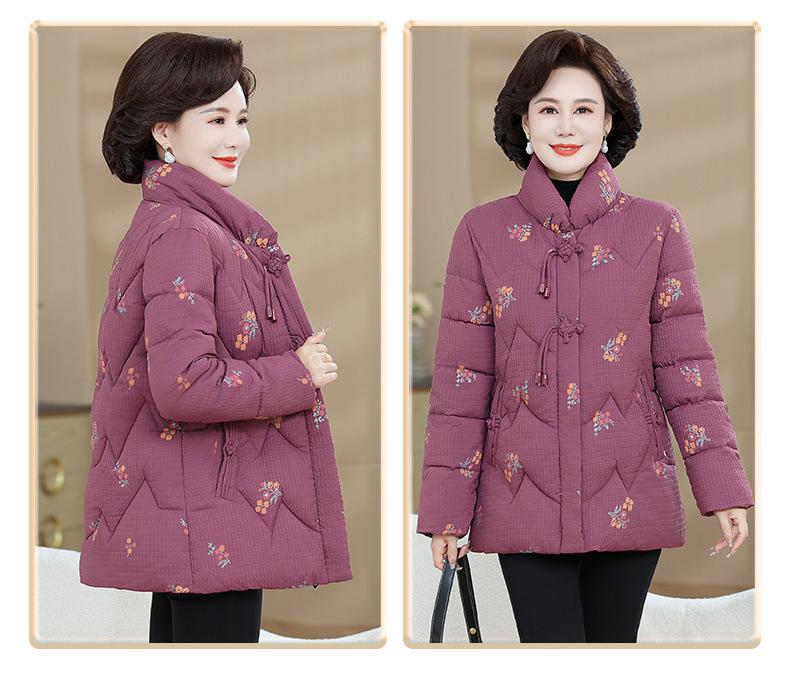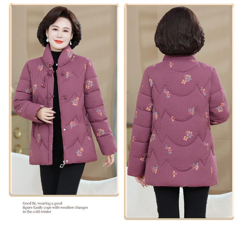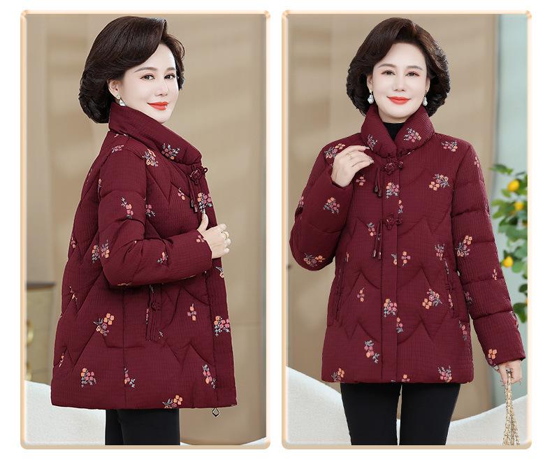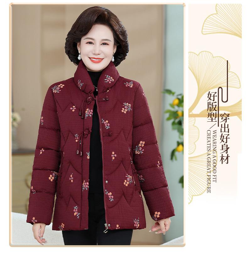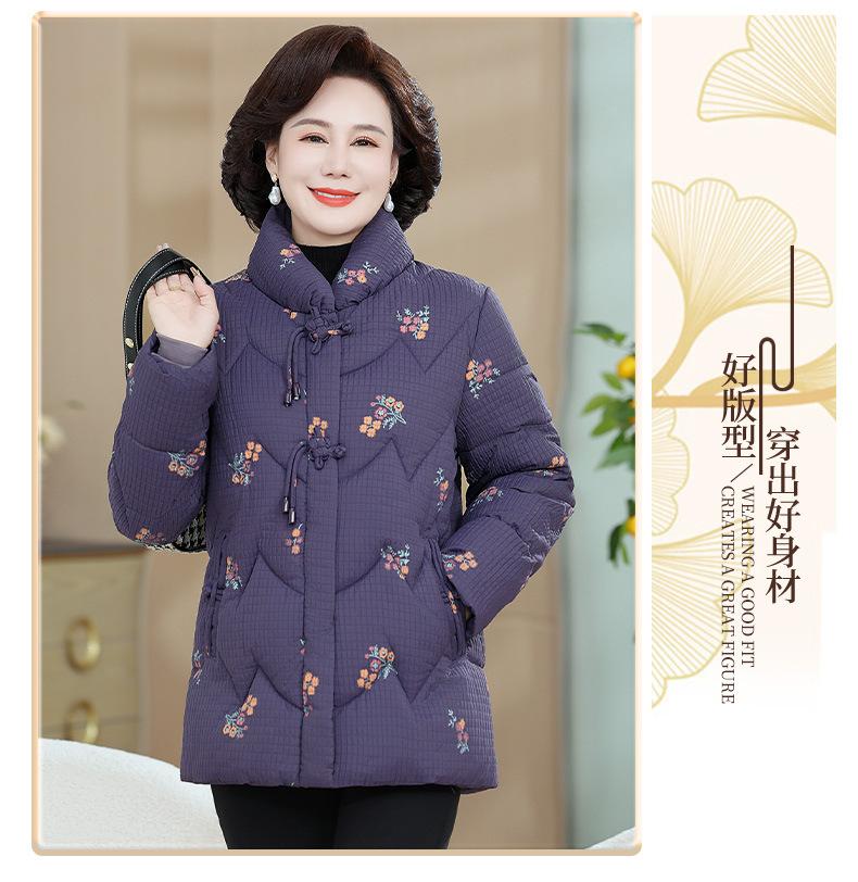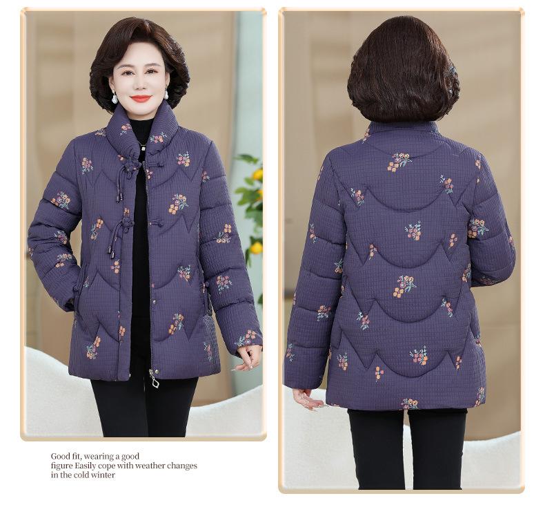 Ropa de invierno para madres 2024, nueva llegada, elegante, de moda, con estampado, cálida, acolchada de algodón, abrigo, cuello de mujer