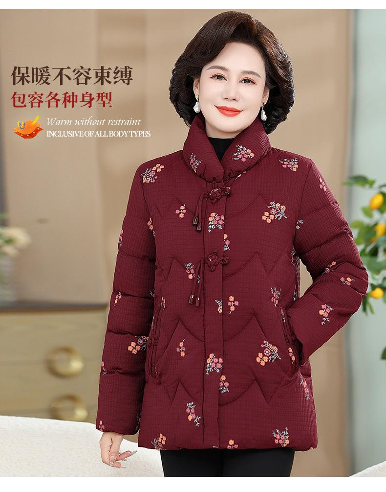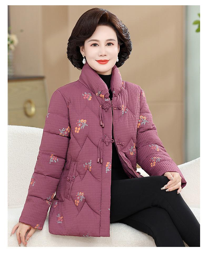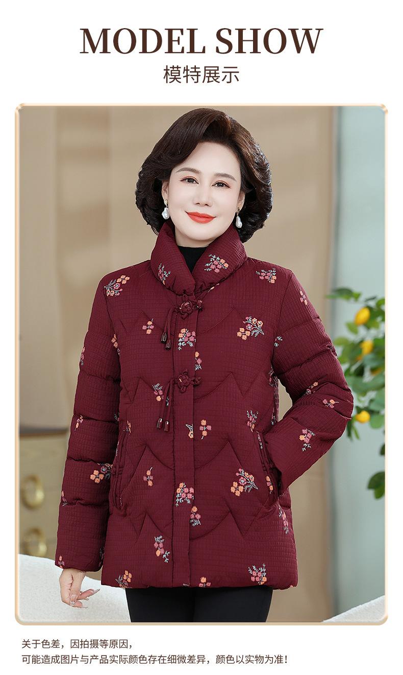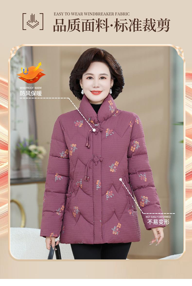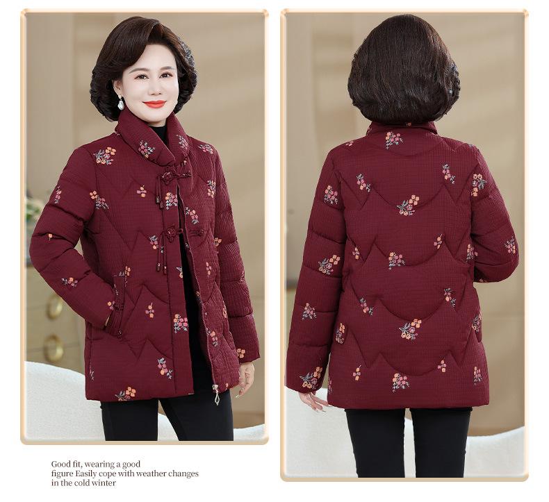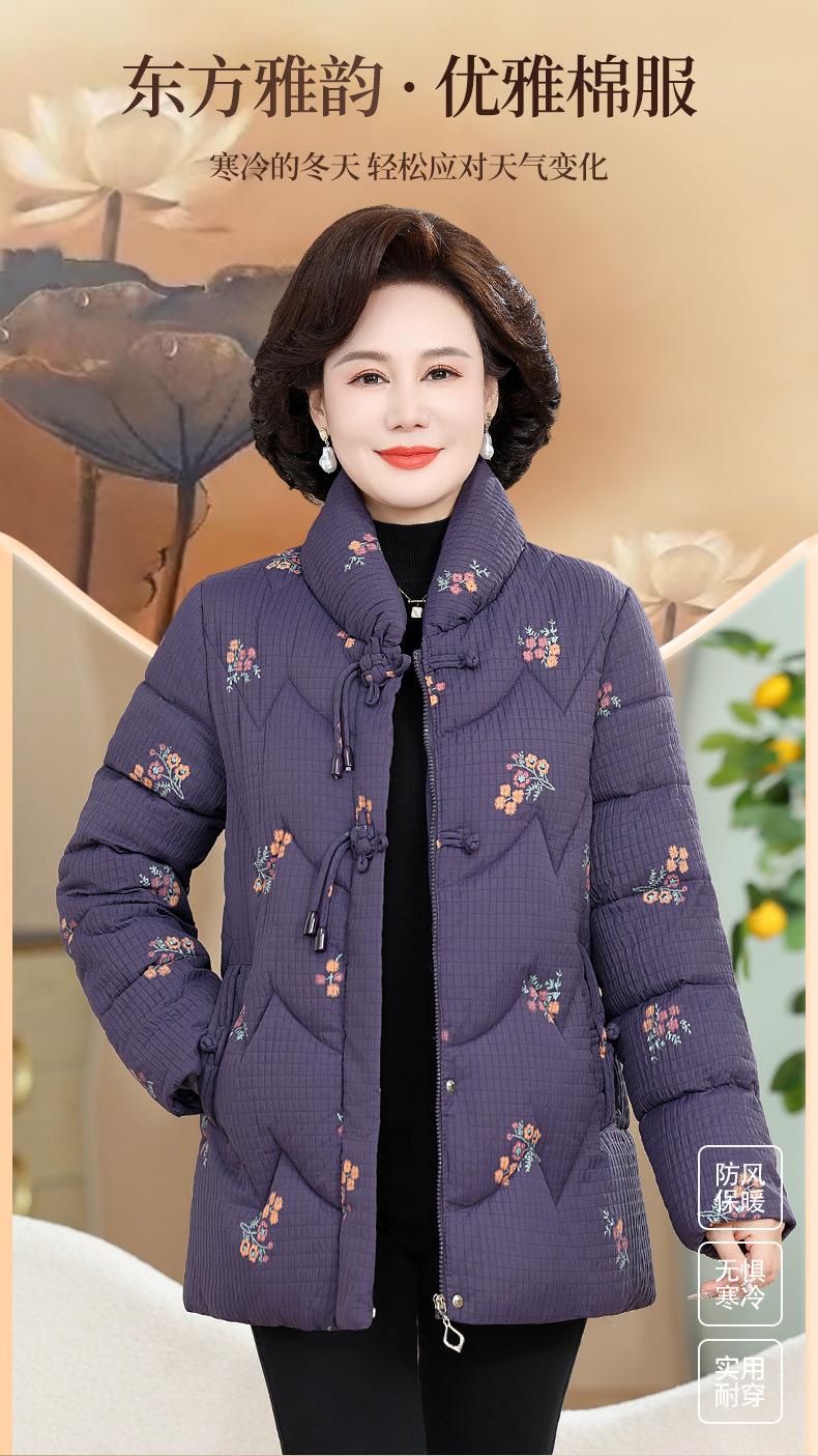 Ropa de invierno para madres 2024, nueva llegada, elegante, de moda, con estampado, cálida, acolchada de algodón, abrigo, cuello de mujer