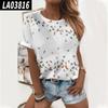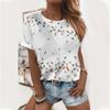 Nueva camiseta de verano de manga corta con cuello redondo y estampado digital de mariposas y flores para mujer de Amazon Cross-border Trade