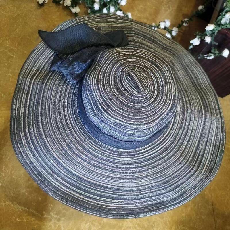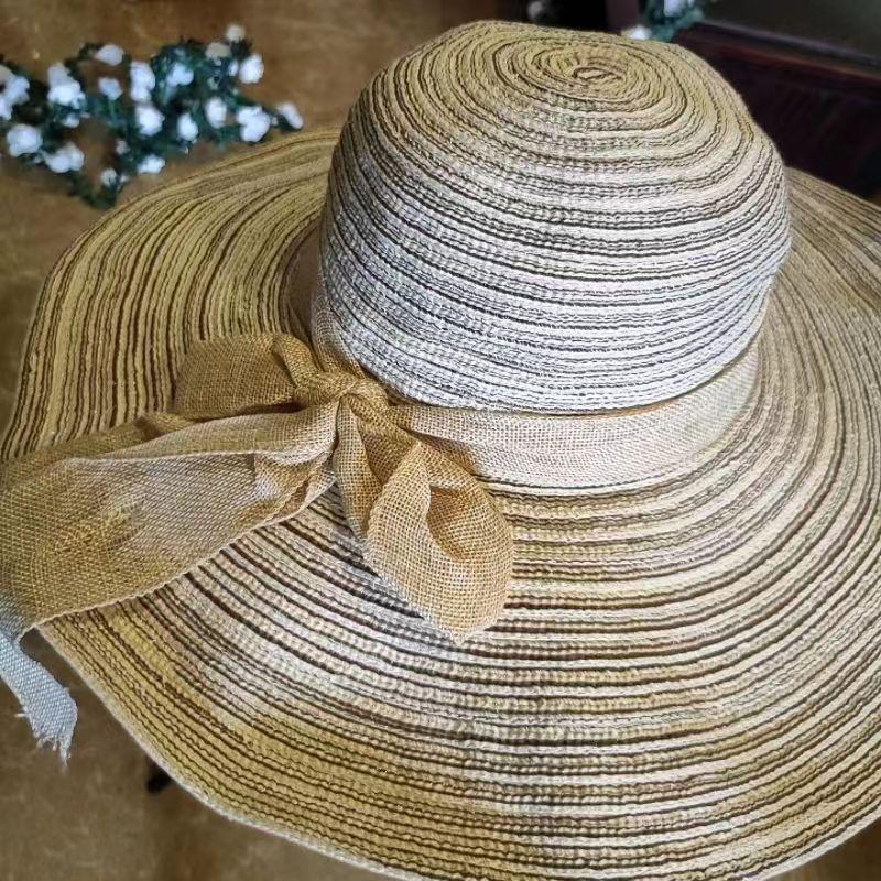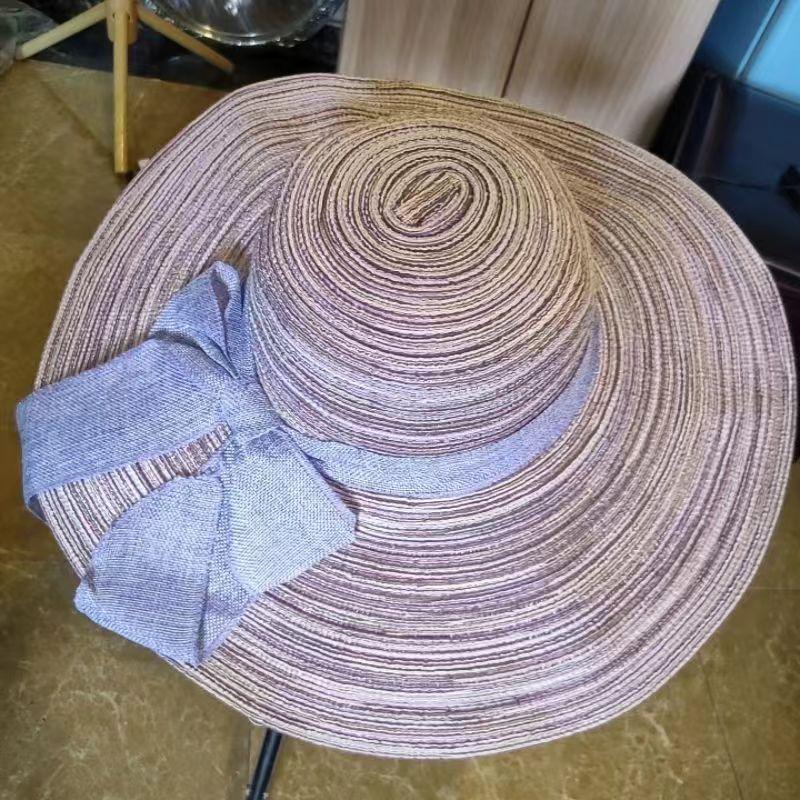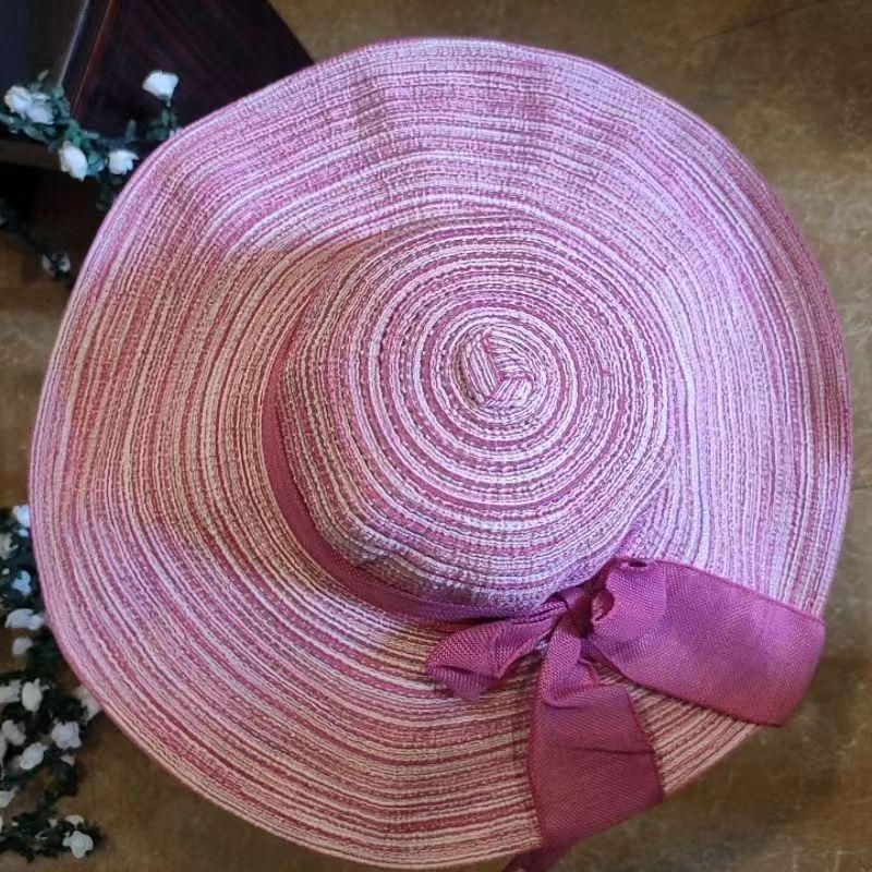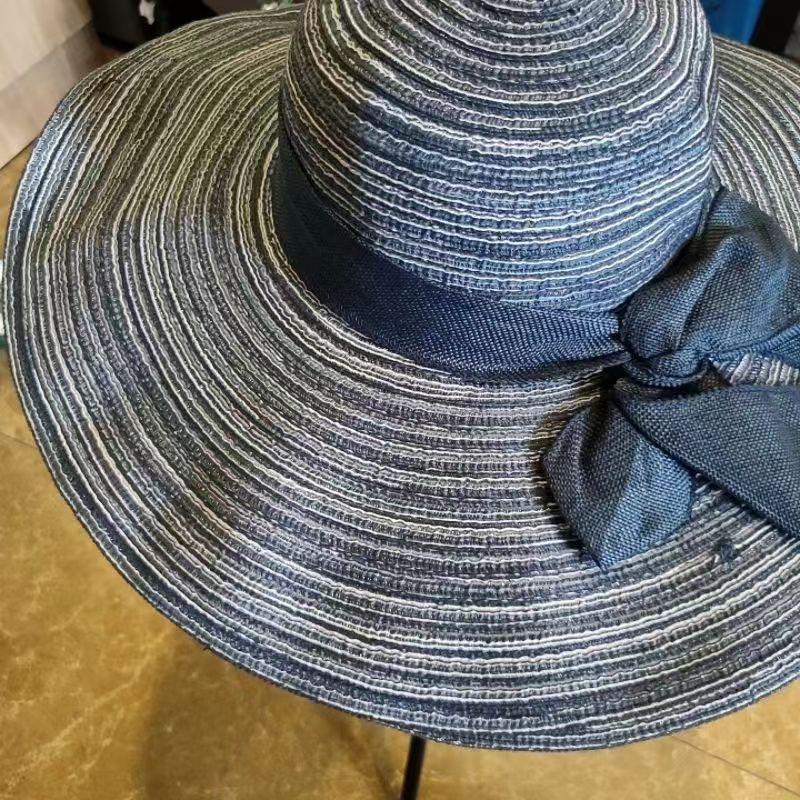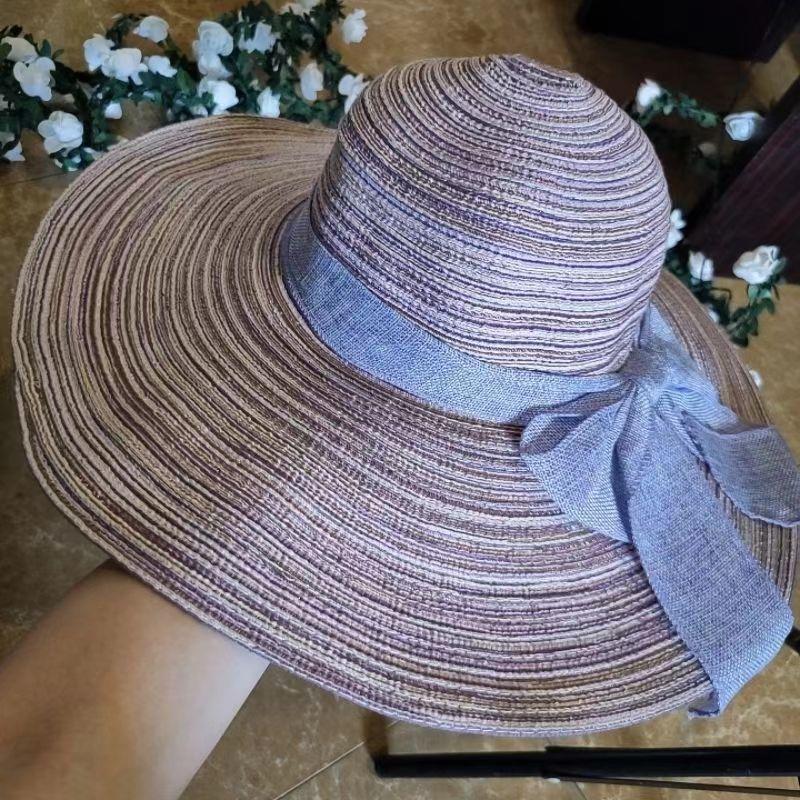 Sombrero de Paja de Ala Ancha para Mujer Plegableable, Moderno y Popular, con Lazo Grande, Sombrero Parasol para Protección Solar, Exportación de Comercio Exterior, Suministro Transfronterizo