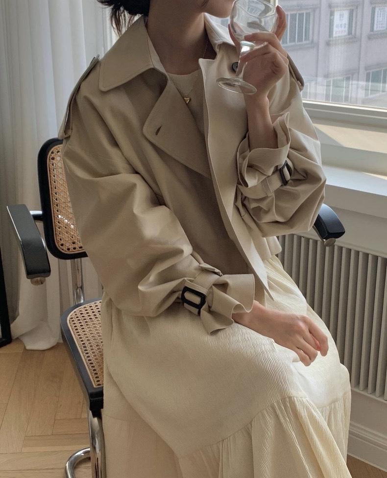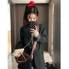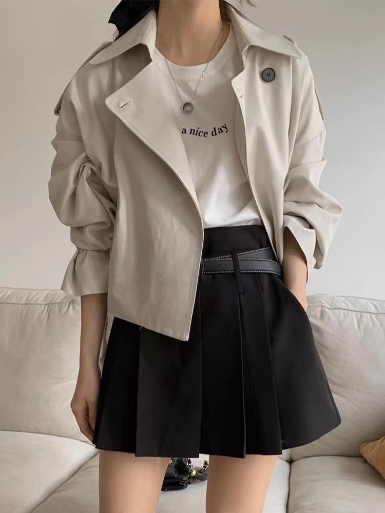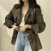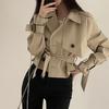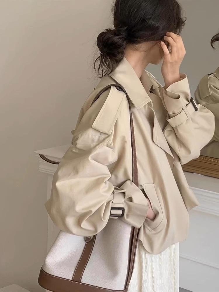 Chic Coreano Otoño Francés Retro Cuello de Traje Dos Botones Suelto Casual Manga Larga Chaqueta Cortavientos Corta para Mujer