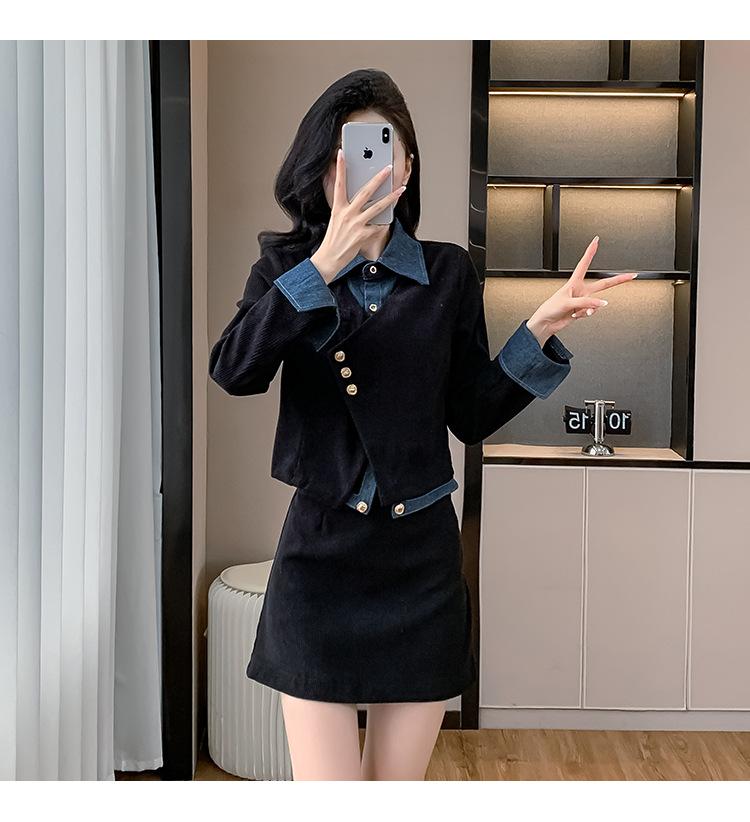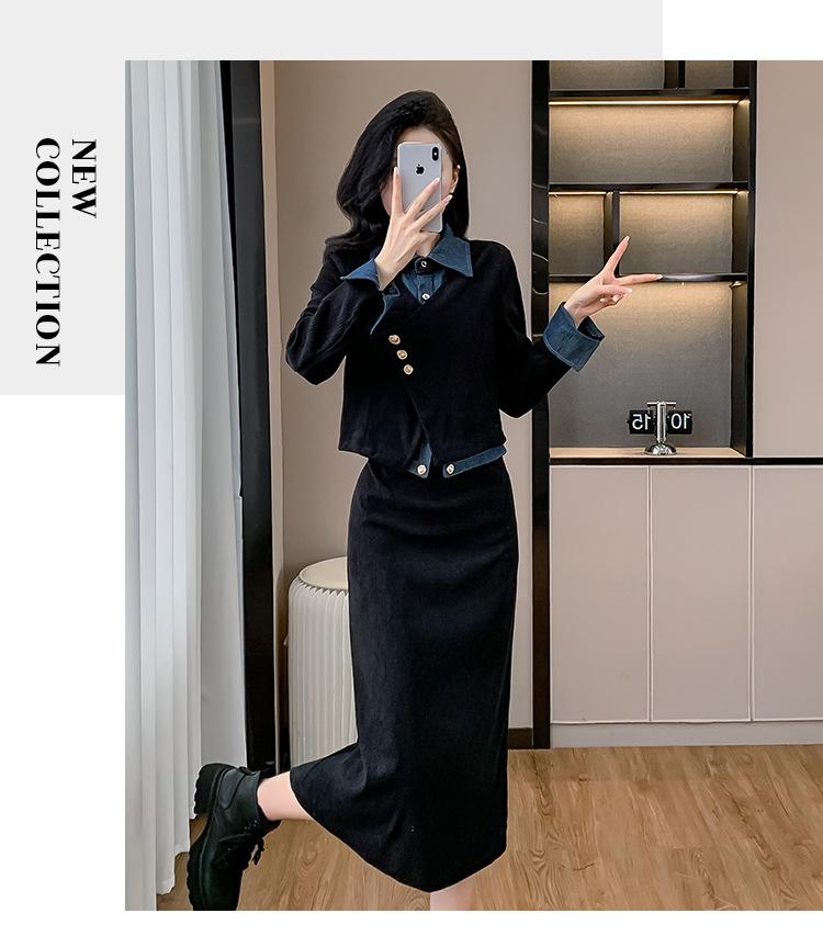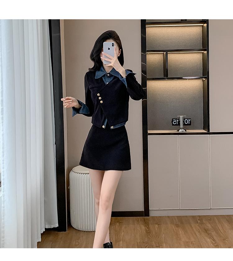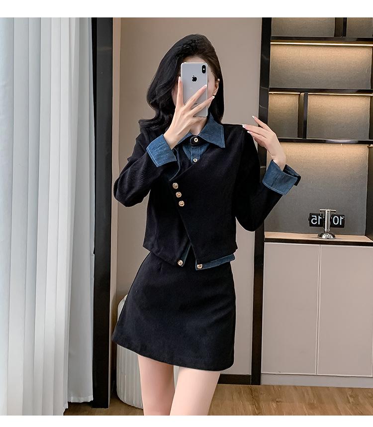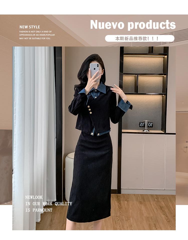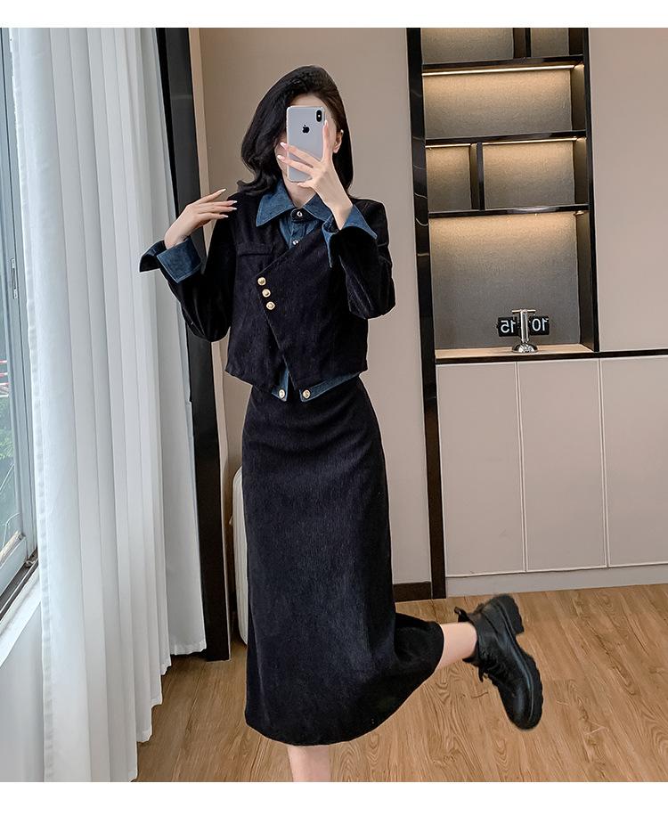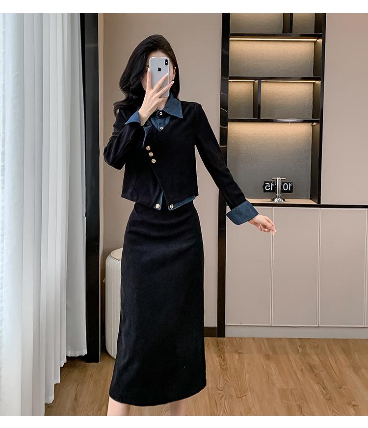 Foto real Primavera y Otoño 2025 Nuevo Estilo Hepburn Delgado Elegante Sentido del Diseño Falso Traje de Top y Falda de Dos Piezas Mujer