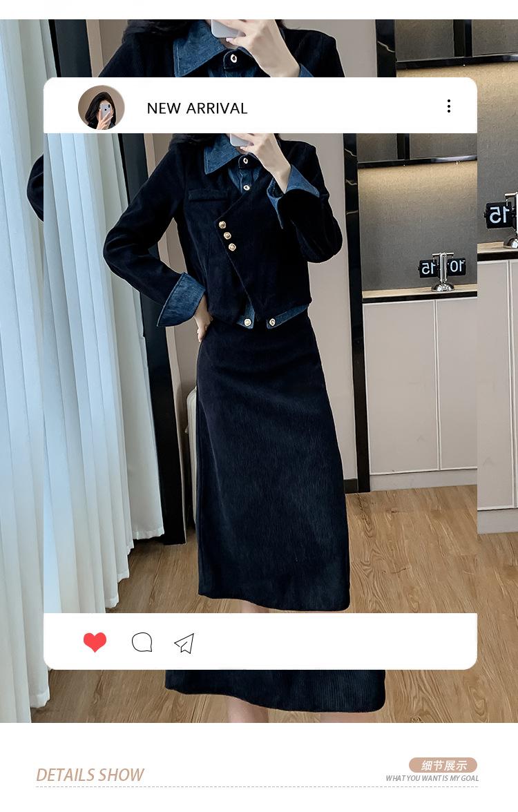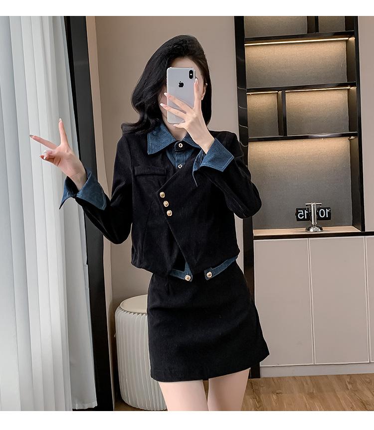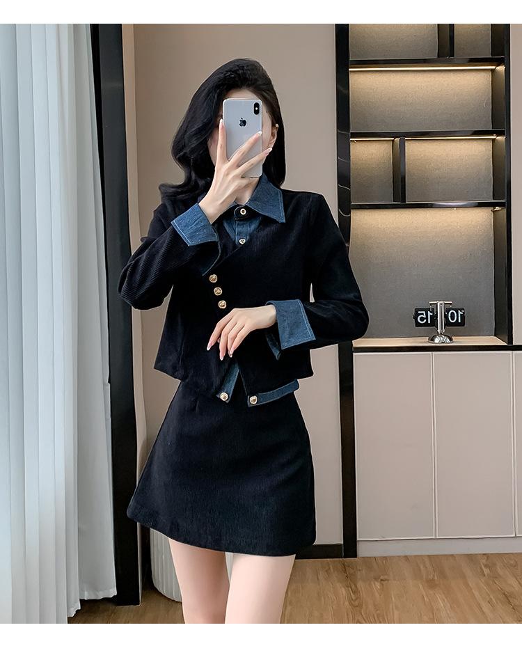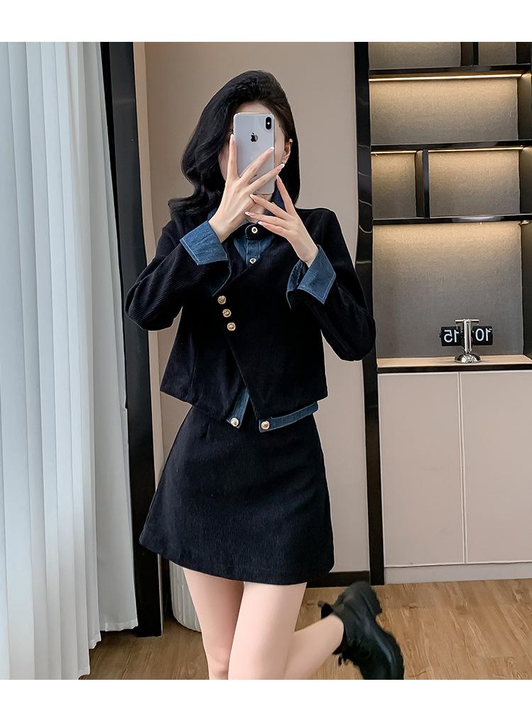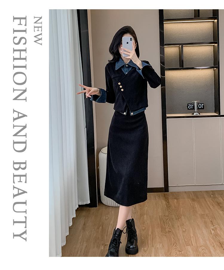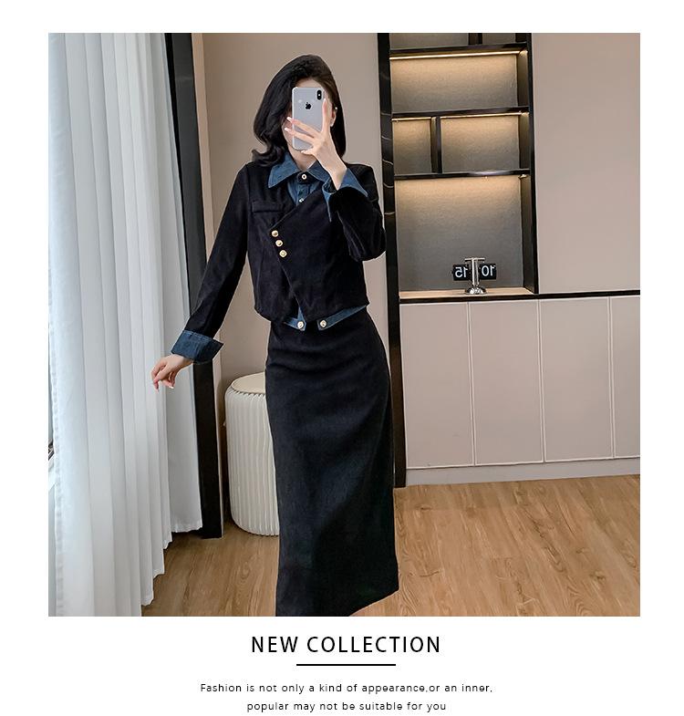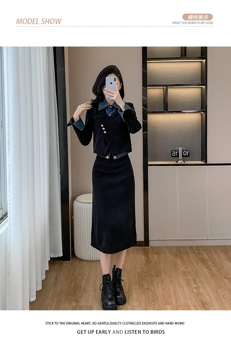 Foto real Primavera y Otoño 2025 Nuevo Estilo Hepburn Delgado Elegante Sentido del Diseño Falso Traje de Top y Falda de Dos Piezas Mujer