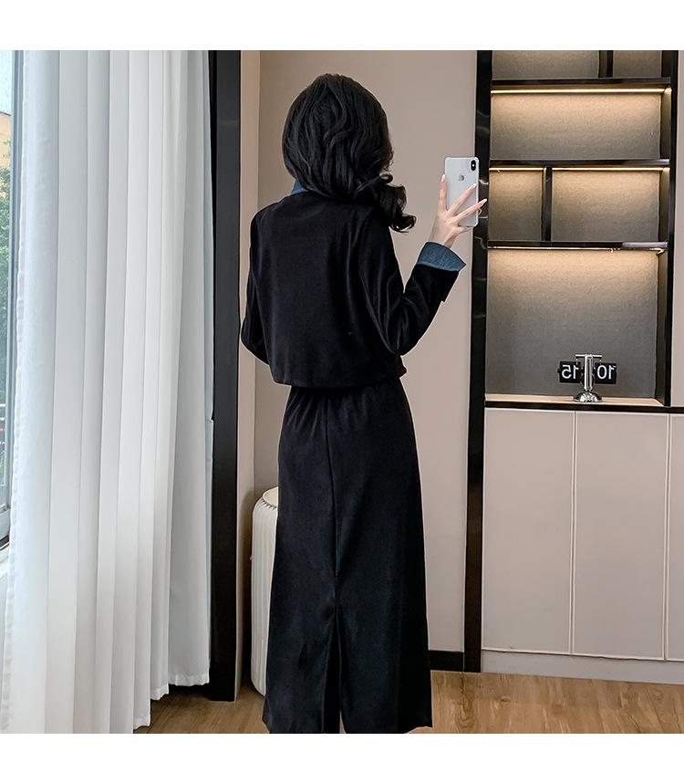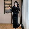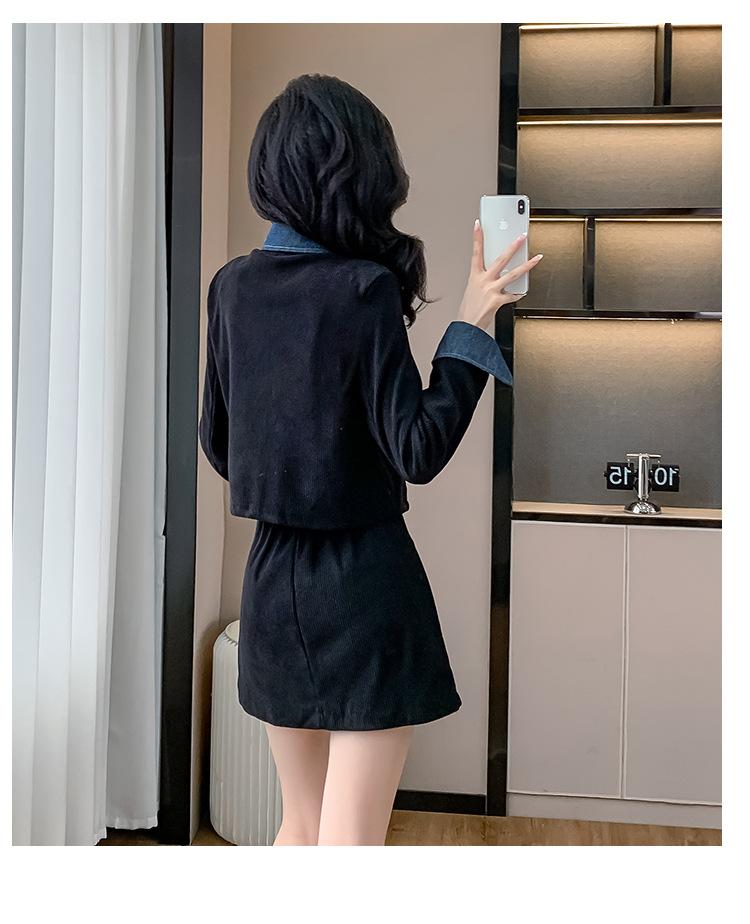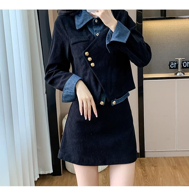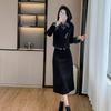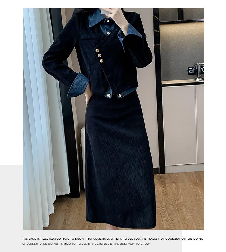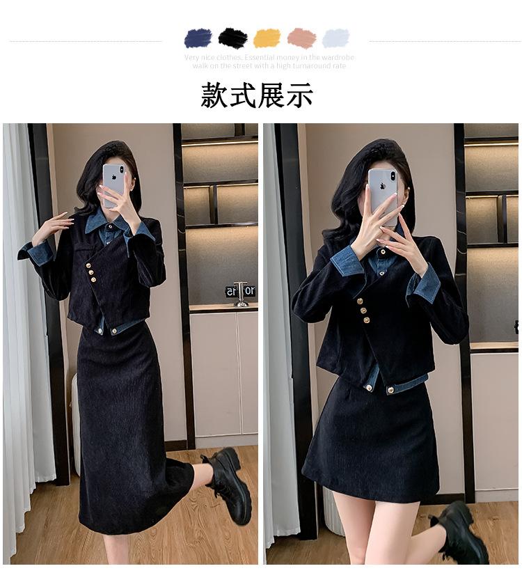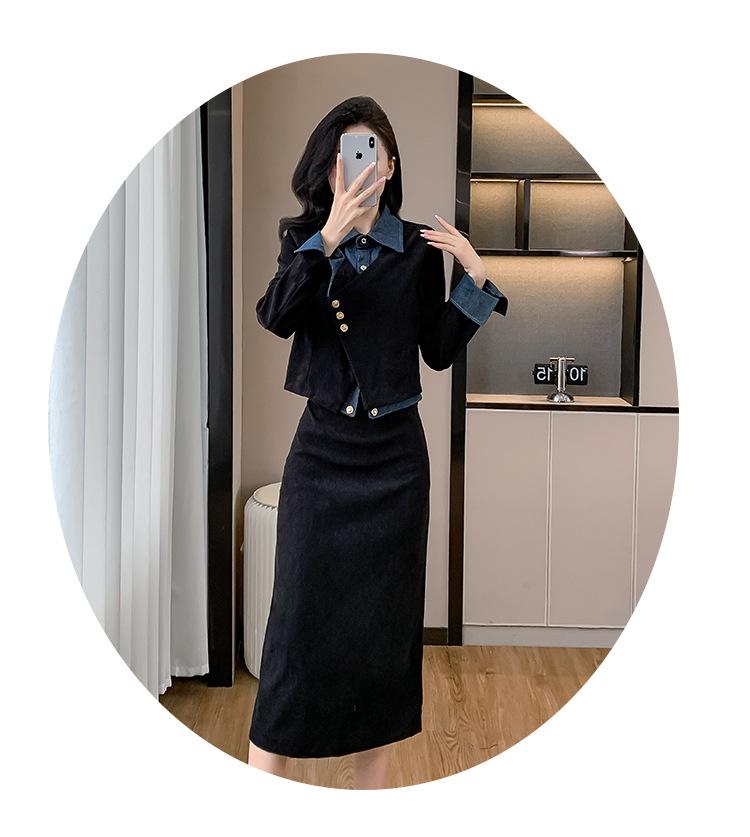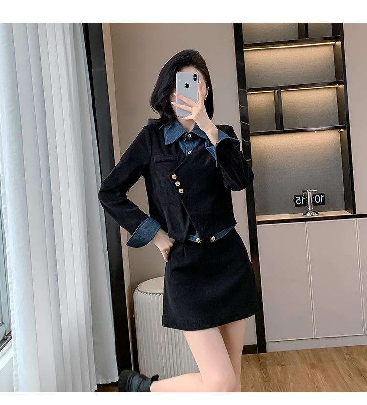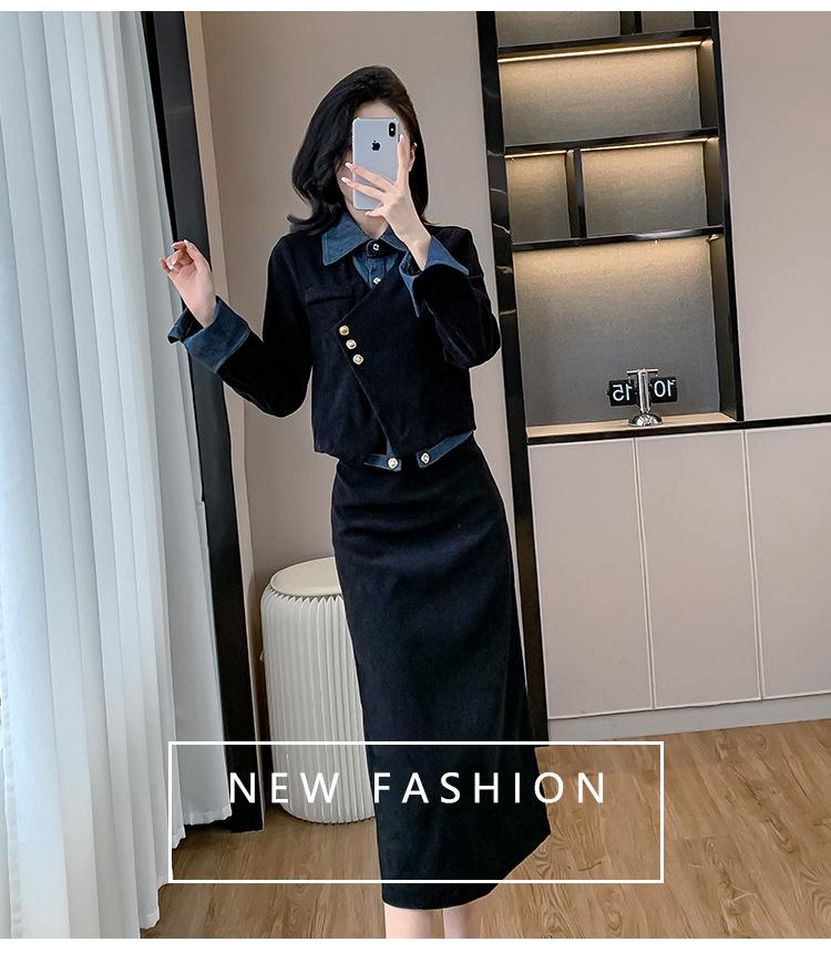 Foto real Primavera y Otoño 2025 Nuevo Estilo Hepburn Delgado Elegante Sentido del Diseño Falso Traje de Top y Falda de Dos Piezas Mujer